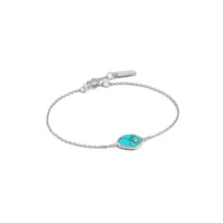 Rhodium plated solid sterling silver engraved bracelet with sliced turquoise stone from Ania Haie. Adding something truly special to a minimal silver chain, this bracelet features a turquoise stone detail, complete with a cubic zirconia finishing touch. Easy to stack with bracelets, bangles or your go-to watch, this delicate chain is your new way to do everyday jewellery. Add a unique touch by personalising the bracelet with the recipients initials. The engraving is made on the reverse of the pendant with the finest quality diamond-tipped cutters.