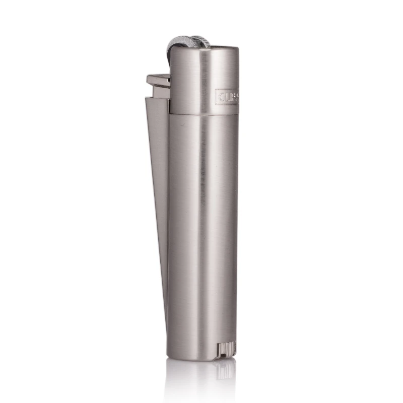 Brushed steel Clipper Lighter featuring a sleek cylindrical design and flint action lighter. The steel personalised lighter is finished with a brushed effect for a slightly textured surface that creates a stunning engraved gift. The personalisation sits along the barrel of the piece, allowing up to 20 characters of engraved text with diamond-tipped machine cutters.