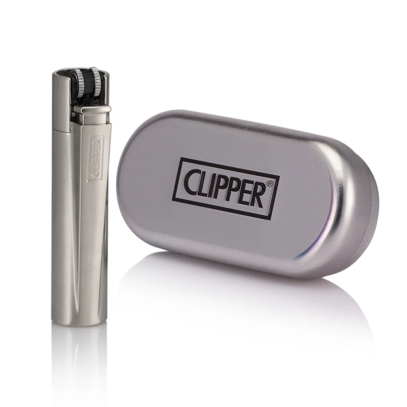 The personalised Clipper lighter in steel measures 75mm high with a diameter of 16mm, and is presented in a Clipper tin box.