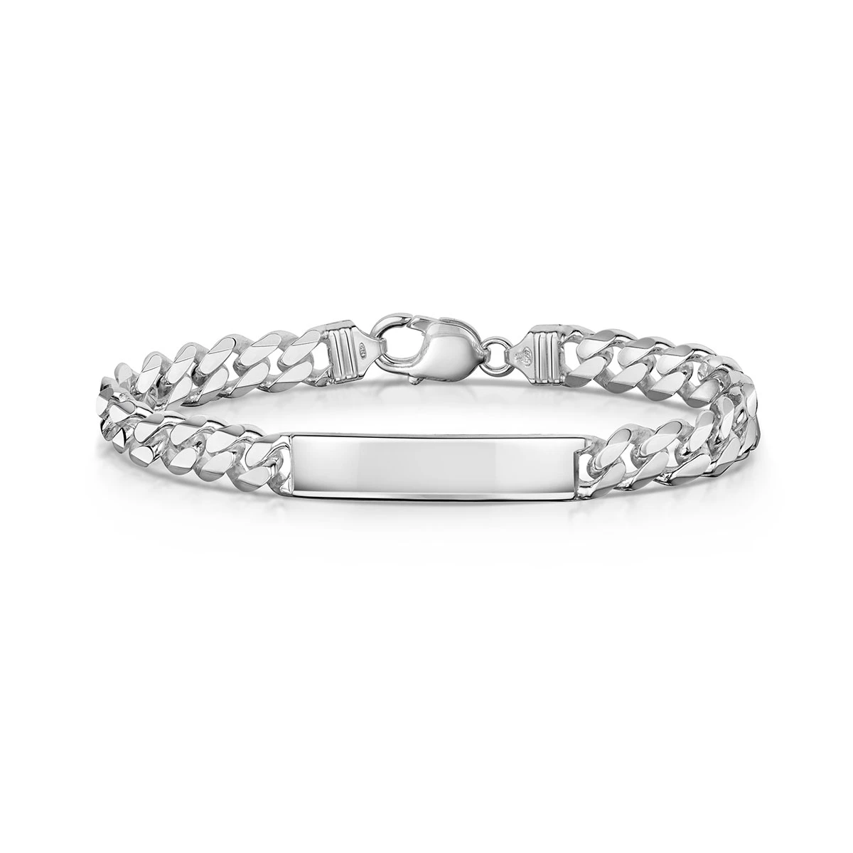 This chunky and versatile accessory combines timeless style with a personal touch. The 925 sterling silver chain exudes a sense of strength and durability, while the steel ID plate serves as a customisable canvas for an engraved message, making it a truly meaningful gift. With a secure lobster clip, this bracelet ensures both comfort and security.
