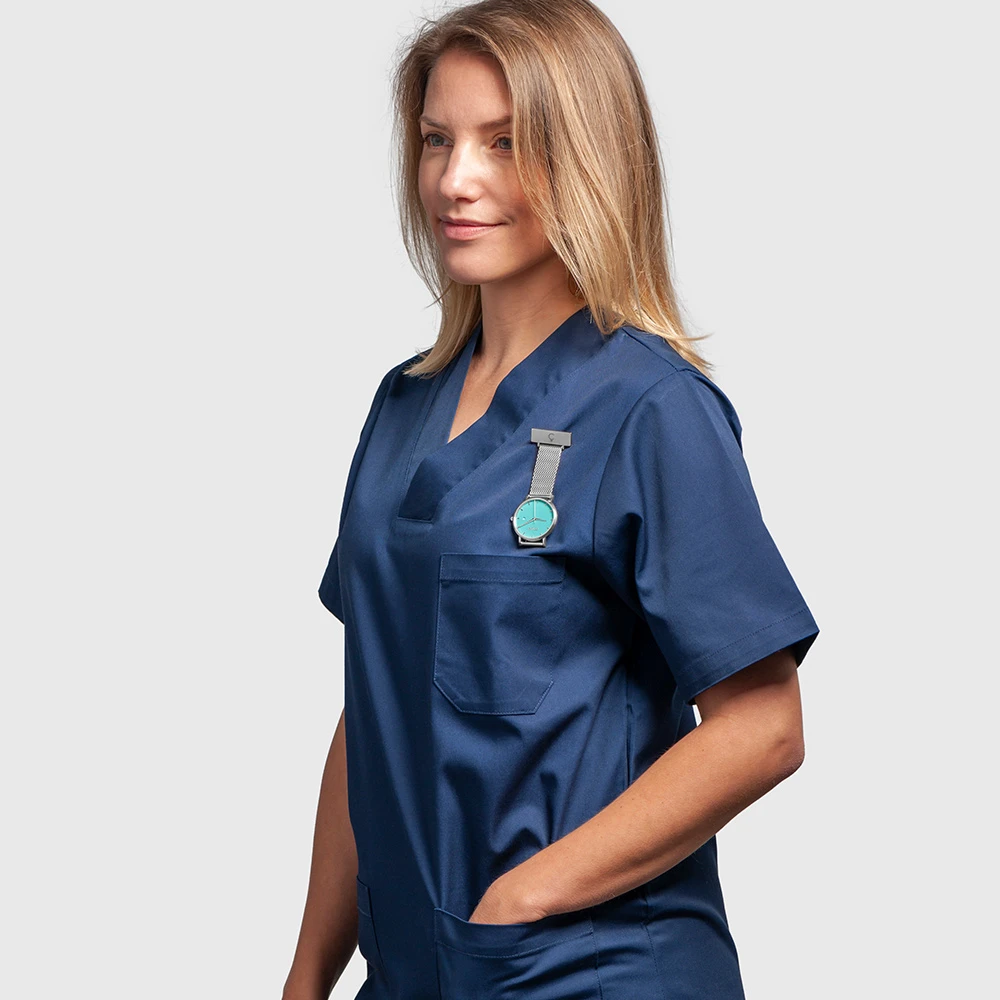 The silver nurse fob watch is 36mm in diameter and the strap measures 45mm in length. It houses a precision Miyota Japanese movement and is water resistant to 5 ATM.