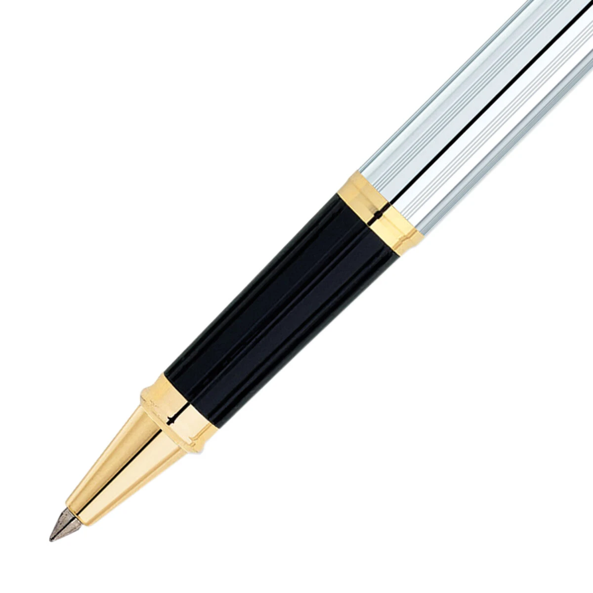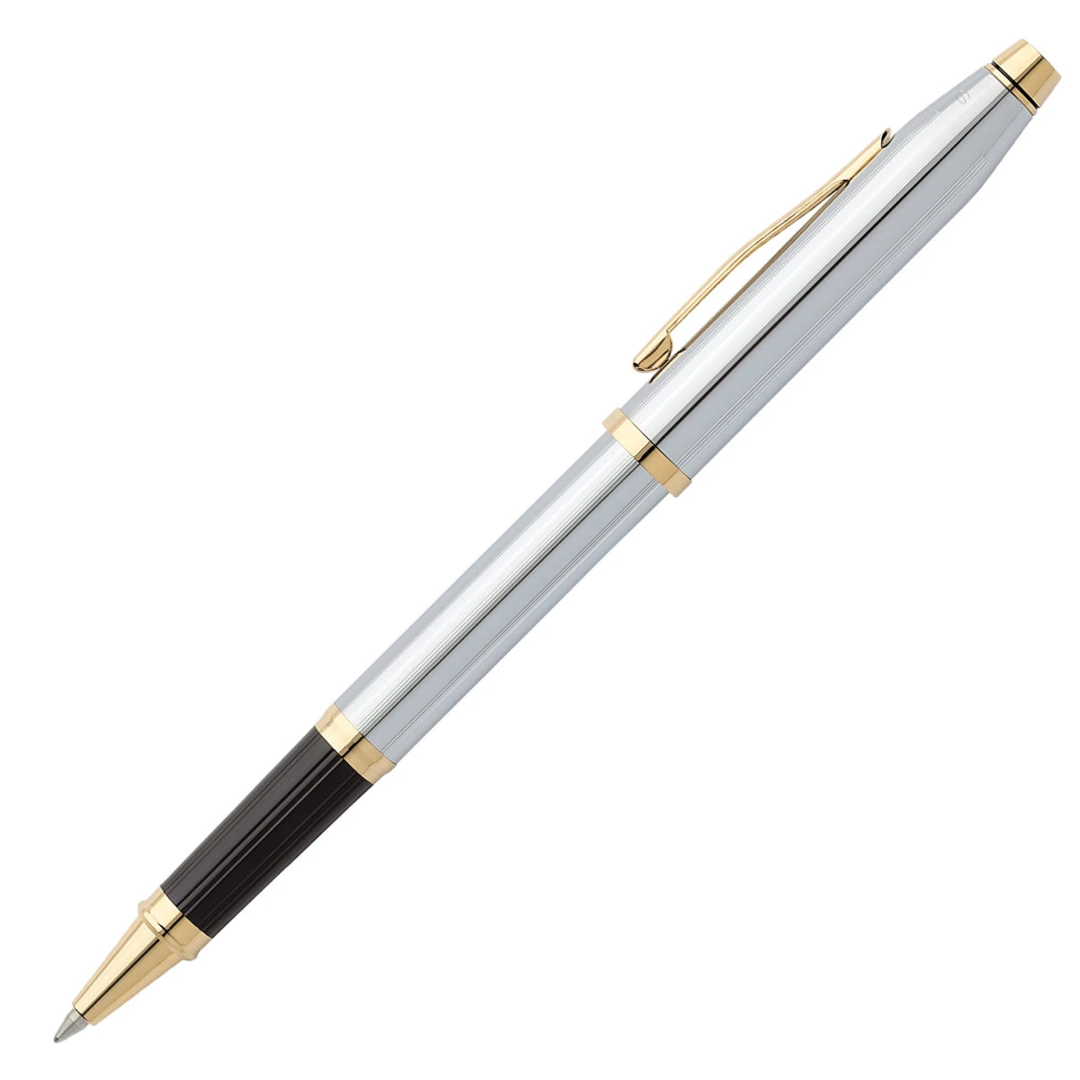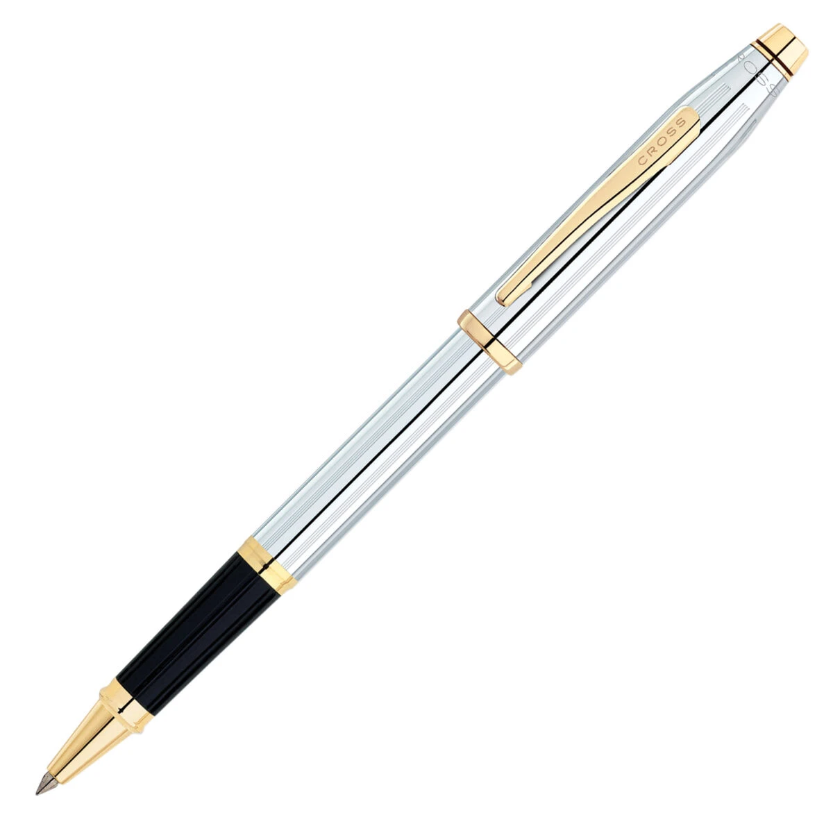 Chrome rollerball pen with gold detail from Cross. Embracing both tradition and evolution—the iconic Cross profile takes a broader point of view with this updated design on their signature pen. Created with a keen appreciation for modernist design, Century II offers a bolder look and wider girth than the original Classic Century. Saturated with colour or finessed with precious metal, it’s everything Cross is famous for, only bigger. Meanwhile, the engraving is expertly finished with a diamond-tipped cutter for a brilliant and lasting impression.