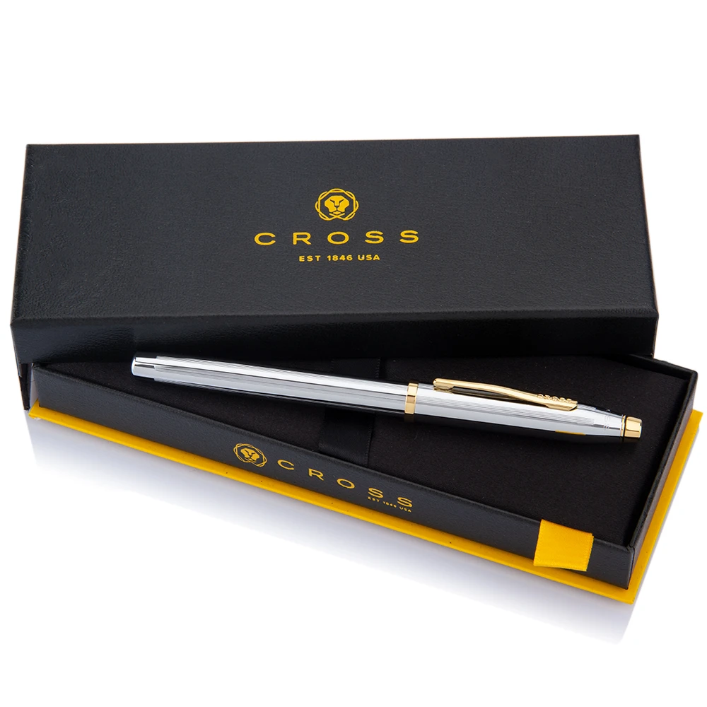 The engraved chrome pen is presented in luxury Cross packaging. There is a Lifetime Mechanical Guarantee from Cross.