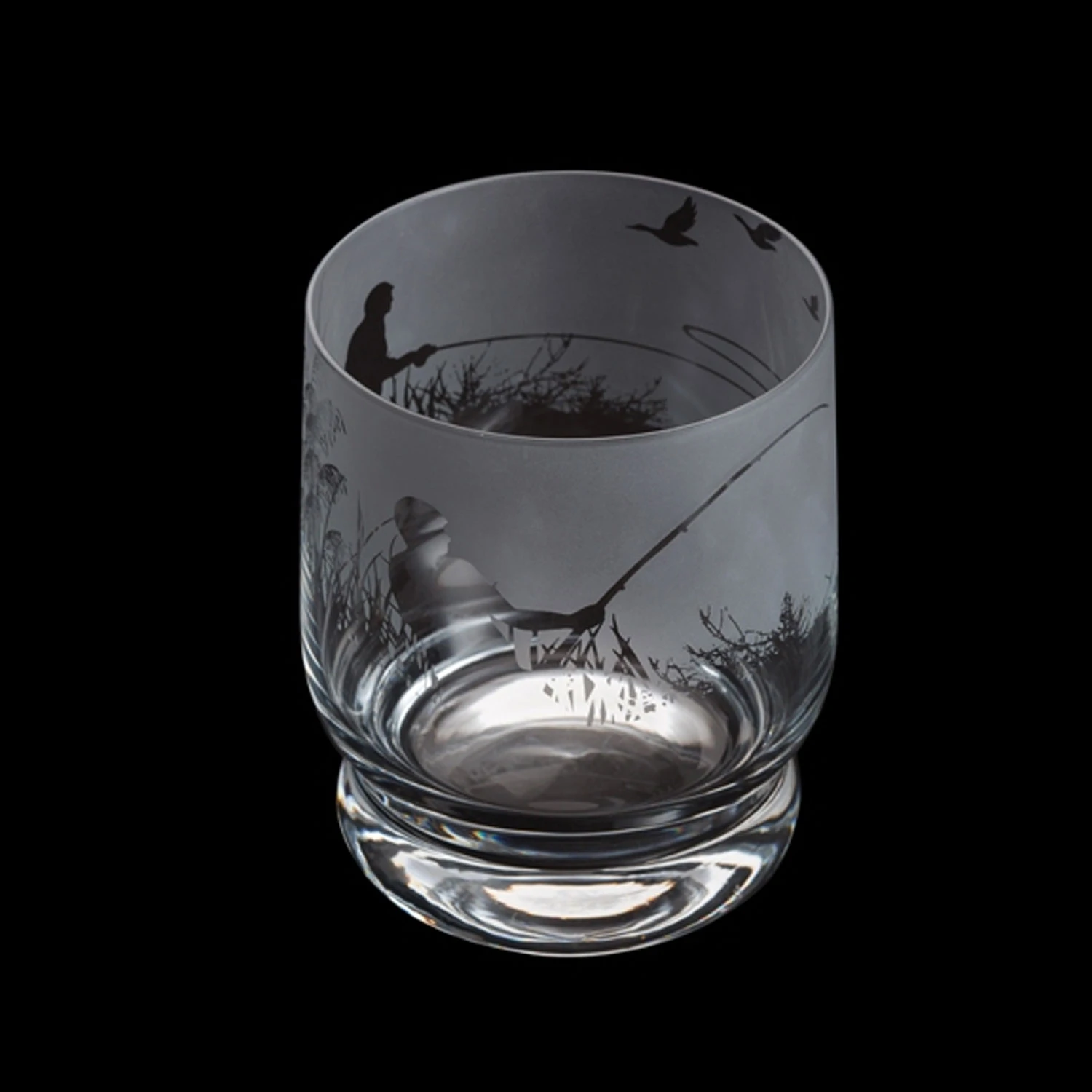 A unique crystal whisky glass, with a fly fishing design from Dartington. A fishing themed glass that would make the perfect gift for any fishing enthusiast. This decorated glass features a detailed 360-degree etched frieze of fly fishing which is wrapped around the rim of the glass. Dishwasher safe and supplied in an attractive gift box. Precision laser engraving cuts a beautiful impression which makes for a personal and special gift.