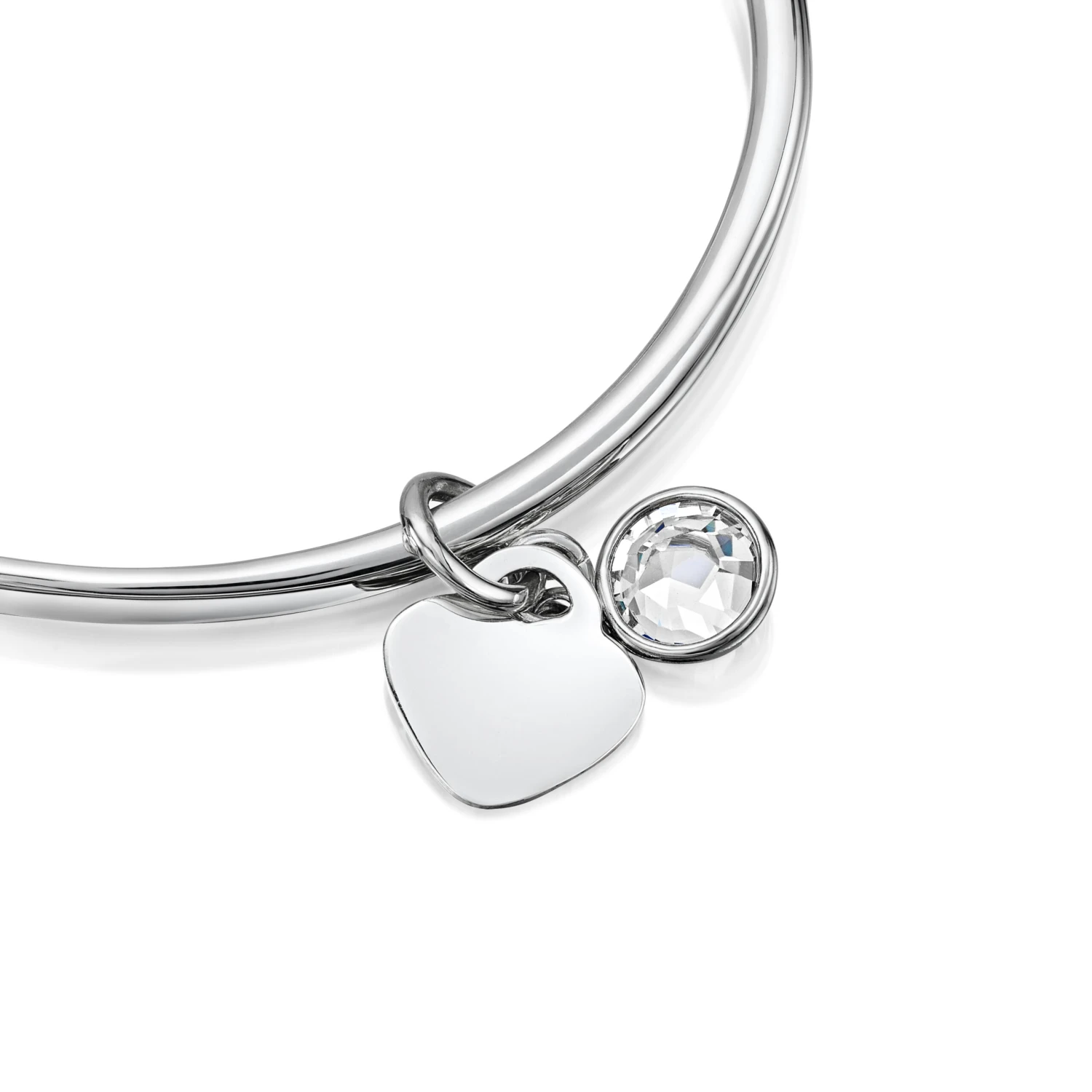 A hallmarked sterling silver torque children’s bangle with small heart charm and Swarovski® birthstone crystal. Introducing our exquisite torque children’s bangle, crafted with utmost care and precision from 925 sterling silver. This timeless piece is designed to capture the hearts of both children and parents alike. Personalization is at the heart of this bangle, as it can be engraved with initials on the dangling heart charm, adding a touch of sentiment and individuality.