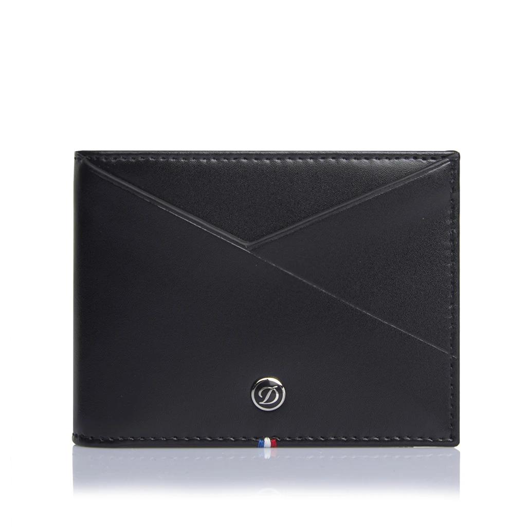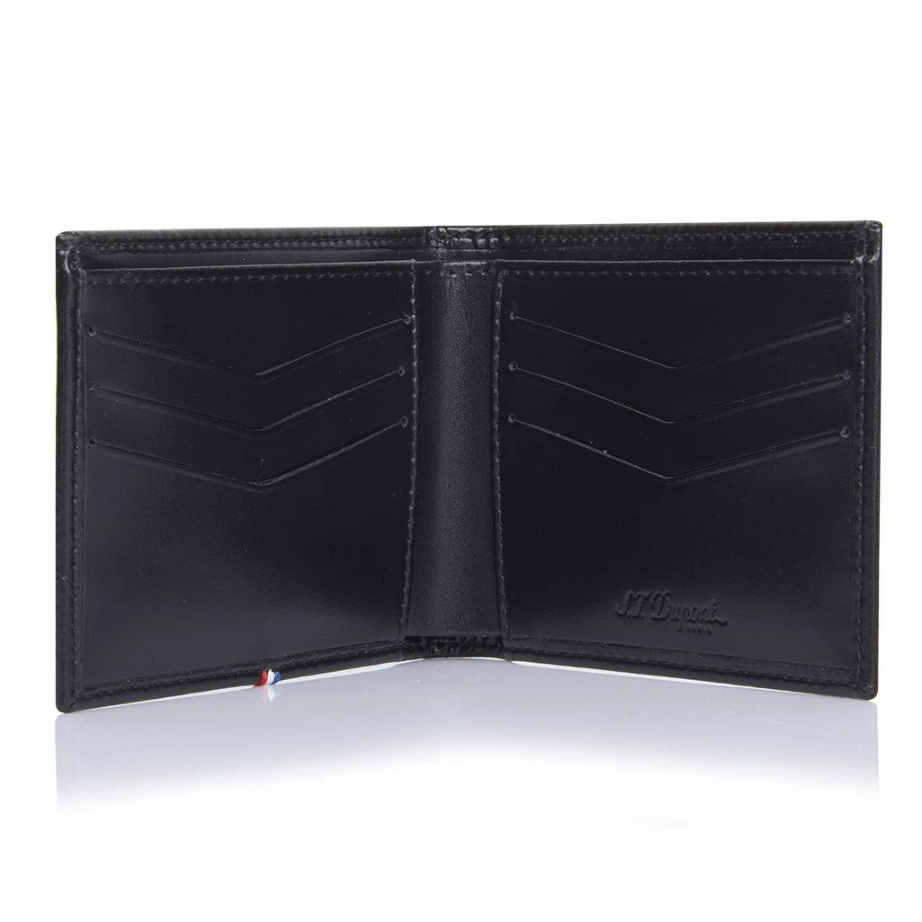 This classic billfold wallet from S.T. Dupont takes on a new graphic style with oblique lines in smooth black leather.
