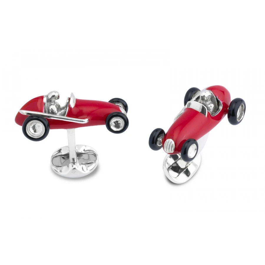 A pair of quirky sterling silver bumble racing car cufflinks, with a striking poppy red enamel finish. From Deakin & Francis, these cufflinks add a sense of style, fun and personality to your day. These racing car cufflinks are the perfect accessory to drive your style to victory! As featured in The Sunday Times Style guide, these top selling racing car cufflinks are modelled on the vintage cars seen tearing around the track in the 1950s. With complimentary personalisation by Engravers Guild with the finest diamond-tipped cutter, made on the reverse of the cufflink, this is a special gift which will always be treasured.