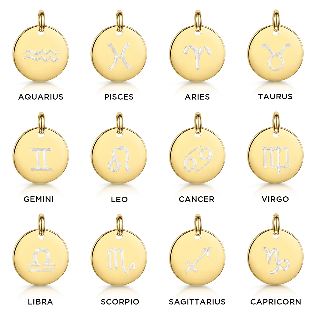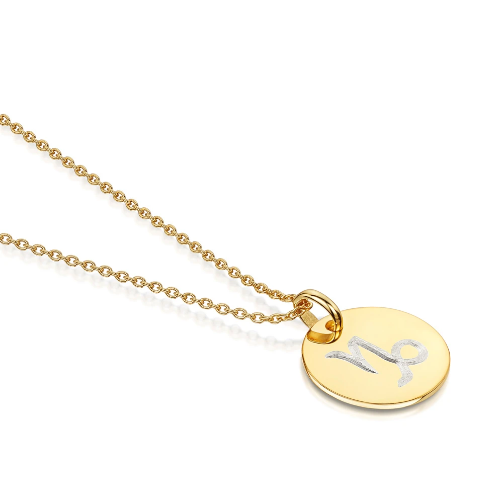 18K gold plate on solid silver pendant featuring one of the 12 Zodiac Constellations on the front and a personal engraved message on the reverse. This personalised necklace from MYRI London is a beautifully formed and exquisitely finished piece. A contemporary update on a timeless design, simply choose for the appropriate Zodiac to be engraved on the front and compose a custom message on the reverse. Intended to last a lifetime, the necklace is an enduring favourite in any jewellery collection. The piece is expertly finished with a traditional diamond-cut engraving for a wonderfully personal touch.