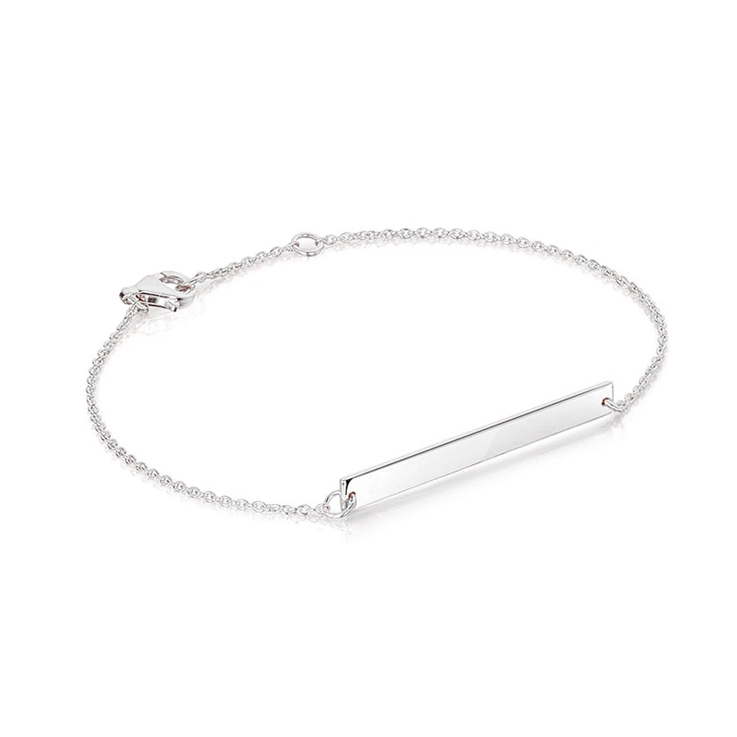 This exquisite accessory combines elegance with a personal touch. The silver flat name plate provides the perfect canvas to engrave a heartfelt message or name, creating a truly customizsed piece. The dainty silver chain adds a touch of delicacy and refinement, enhancing any outfit with its subtle charm. With a secure lobster clasp available in 7 and 7.5 inches, this bracelet offers a comfortable and adjustable fit.