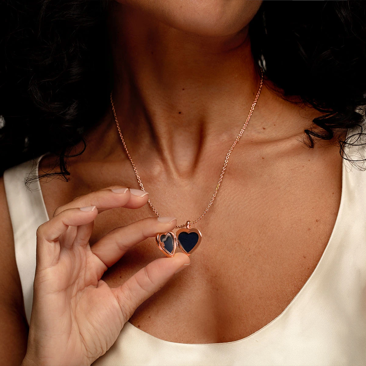 The personalised rose gold heart locket measures 18mm in width at the widest part, and 18mm in height. The chain offers an adjustable length of either 16 or 18 inches, and the locket is engraved with a custom message on the reverse.