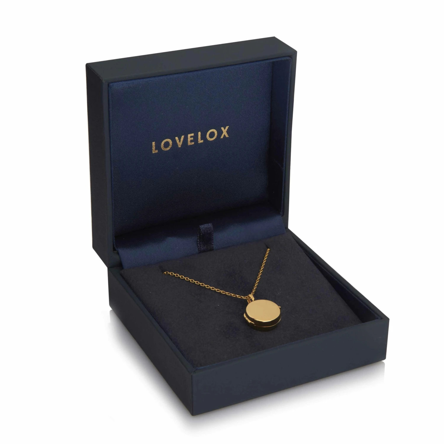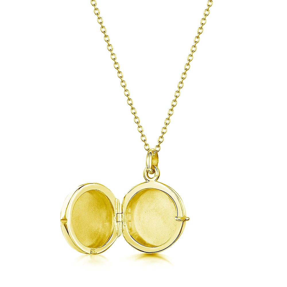 Gold plate on solid sterling silver personalised locket, with contemporary styling and exquisite finish from LoveLox. This perfectly poised piece showcases the beautifully clean lines, with the hinge seamlessly engineered into the curve of the drum and clasp closing flawlessly against its opposite side. Expert engraving from Engravers Guild of London completes a very special gift.