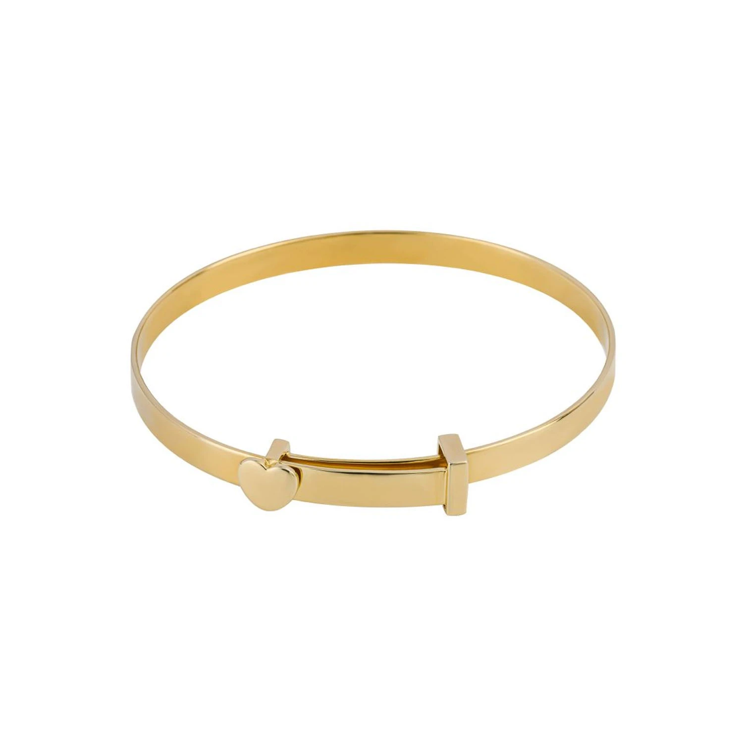 A hallmarked gold plated 925 sterling silver extendable children’s bangle featuring a love heart motif. Introducing our exquisite children’s bangle, crafted with utmost care and precision from 925 sterling silver. This timeless piece is designed to capture the hearts of both children and parents alike. Personalization is at the heart of this bangle, as it can be engraved with a personal message or the child’s name, adding a touch of sentiment and individuality.
