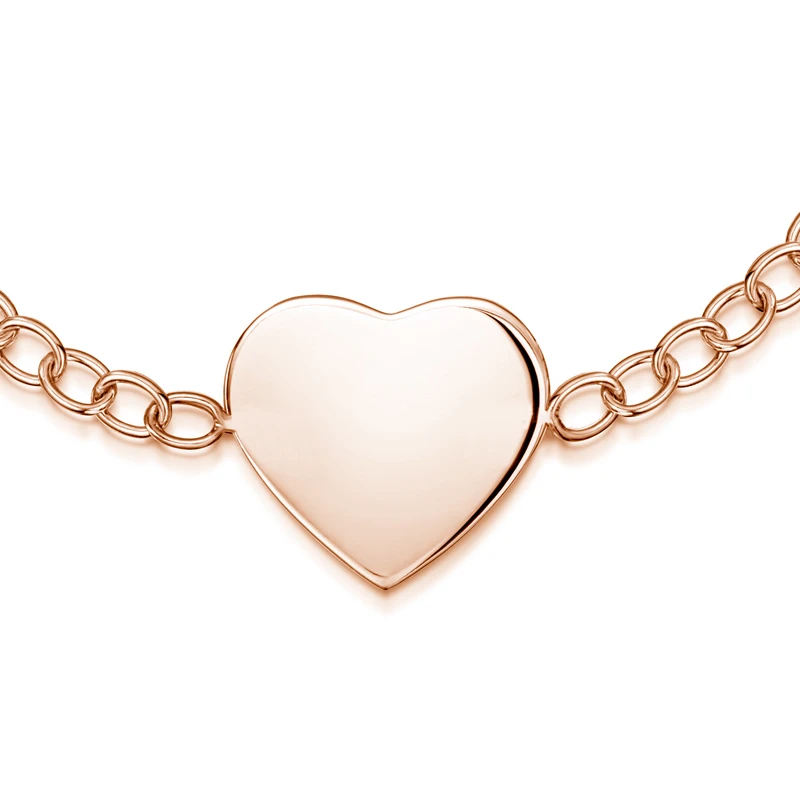 Rose gold plated solid silver heart tag on sterling silver chain from MYRI London. This beautiful personalised bracelet is a classic piece that should have a place in every jewellery collection. The rose gold plated chain is finely balanced to be substantial yet delicate, and the heart tag is the perfect stage to showcase an exquisite personalised engraving. All engraving is carried out with the finest diamond-tipped cutters to create a stunning piece that is designed to last indefinitely and grow with the person.