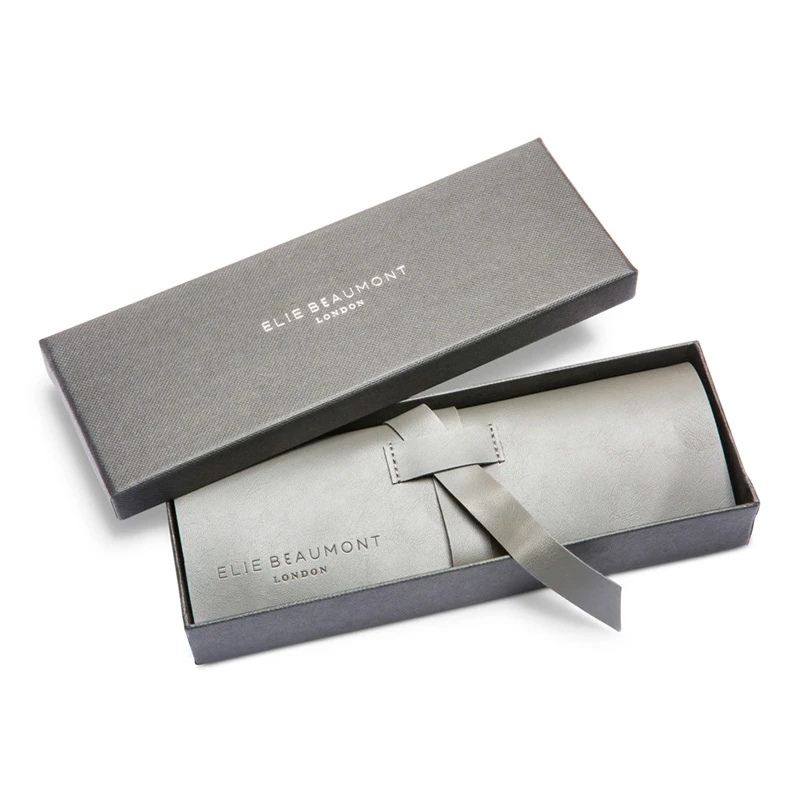 Engraved ladies watch from Elie Beaumont in rose gold and with grey leather strap. This women’s timepiece features a large 38mm case with a precision Japanese Miyota movement, a hardened mineral glass and water resistance to 3 atmospheres. Delivered in Elie Beaumont signature packaging with a contemporary grey leather cover, the watch delivers a feminine and stylish gift experience.