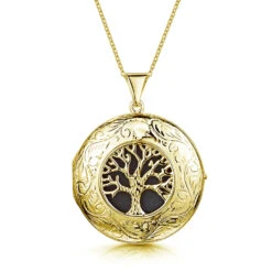 Large Tree of Life personalised locket in 925 sterling silver with gold plate from LoveLox. Representing the connectedness of all forms of creation, this locket reinterprets the ancient symbol with wonderfully clean lines, hand-engraved detailing and contemporary styling. Commonly depicted across cultures and faiths from all over the world, this universal image denotes wisdom, enlightenment, growth and strength, bearing positive associations for the wearer.