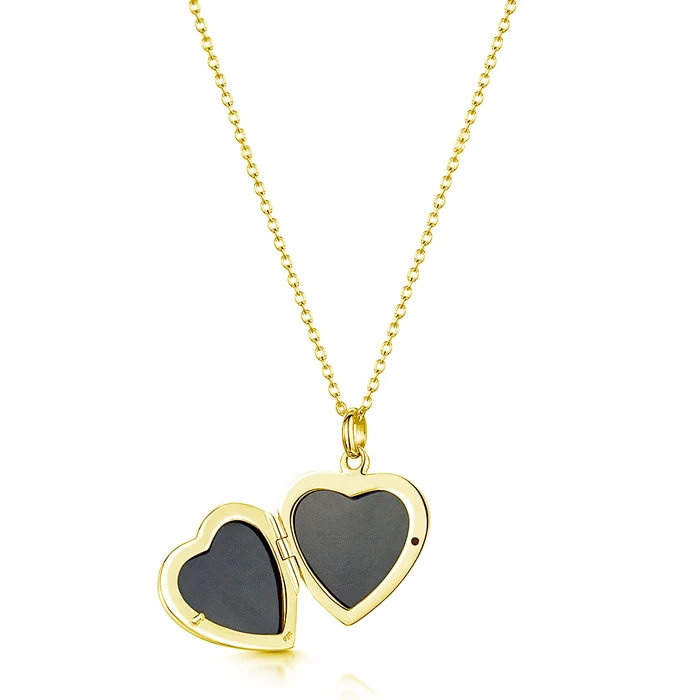 Gold plate on solid sterling silver for this Little Personalised Heart Locket. This beautiful piece from LoveLox is a popular favourite in the collection, boasting classic heart proportions but in a contemporary finish with clean lines and exquisite engineering.The discreet hinge is seamlessly designed into the flow of the heart while the clasp offers a balance on the opposite side.