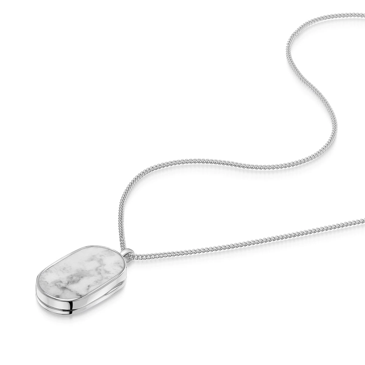 This large dog tag men’s locket and chain from LOVELOX is a bold statement piece crafted from 925 sterling silver and features a howlite gemstone, known for its calming and soothing properties.