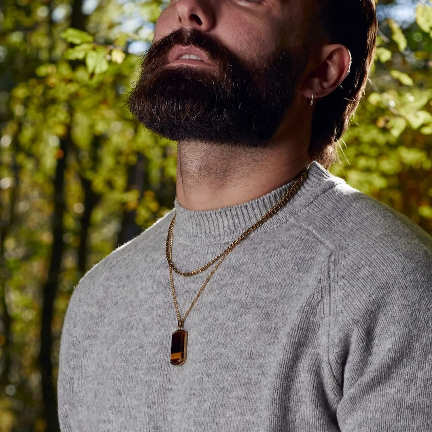 Men’s Tiger’s Eye Dog Tag Necklace – Gold