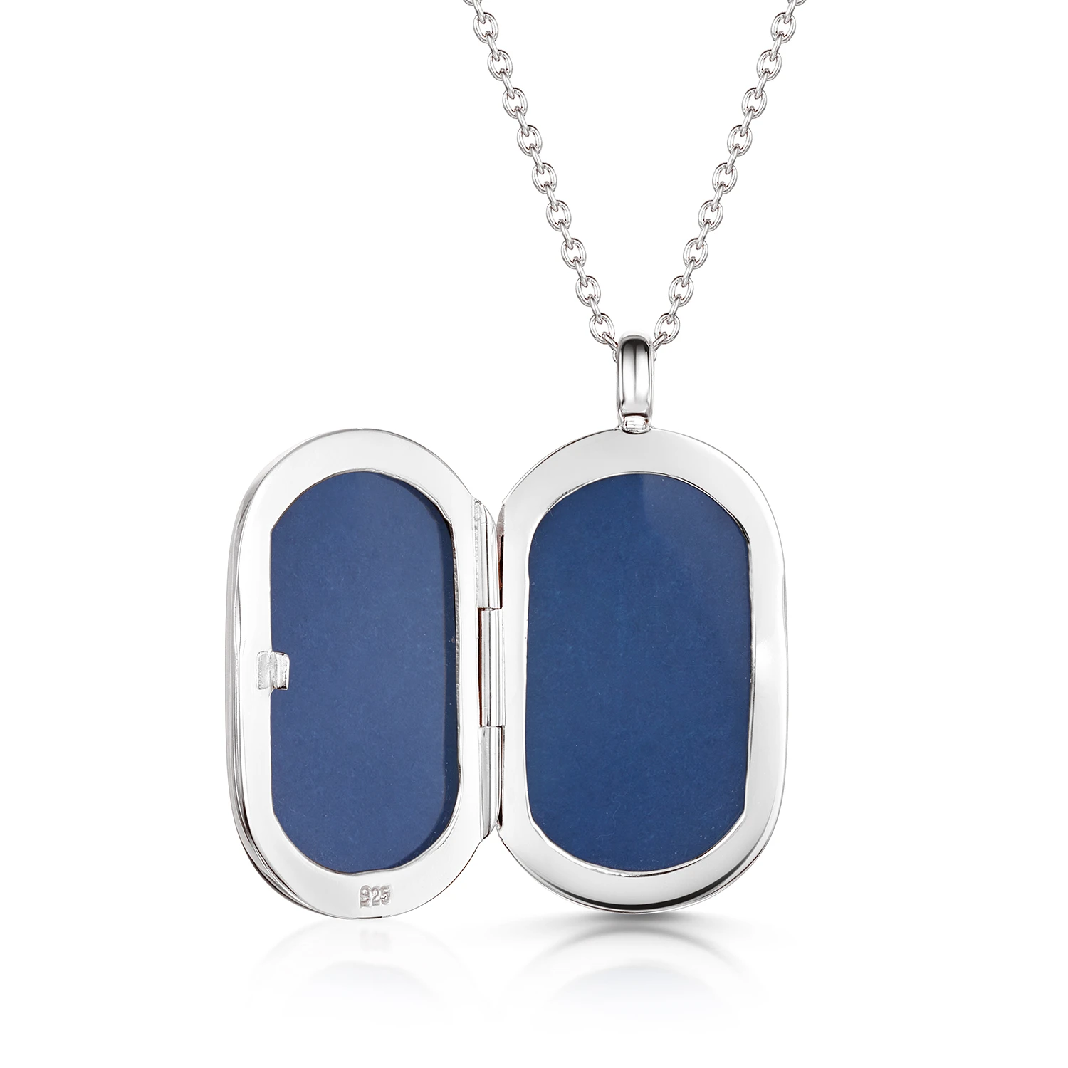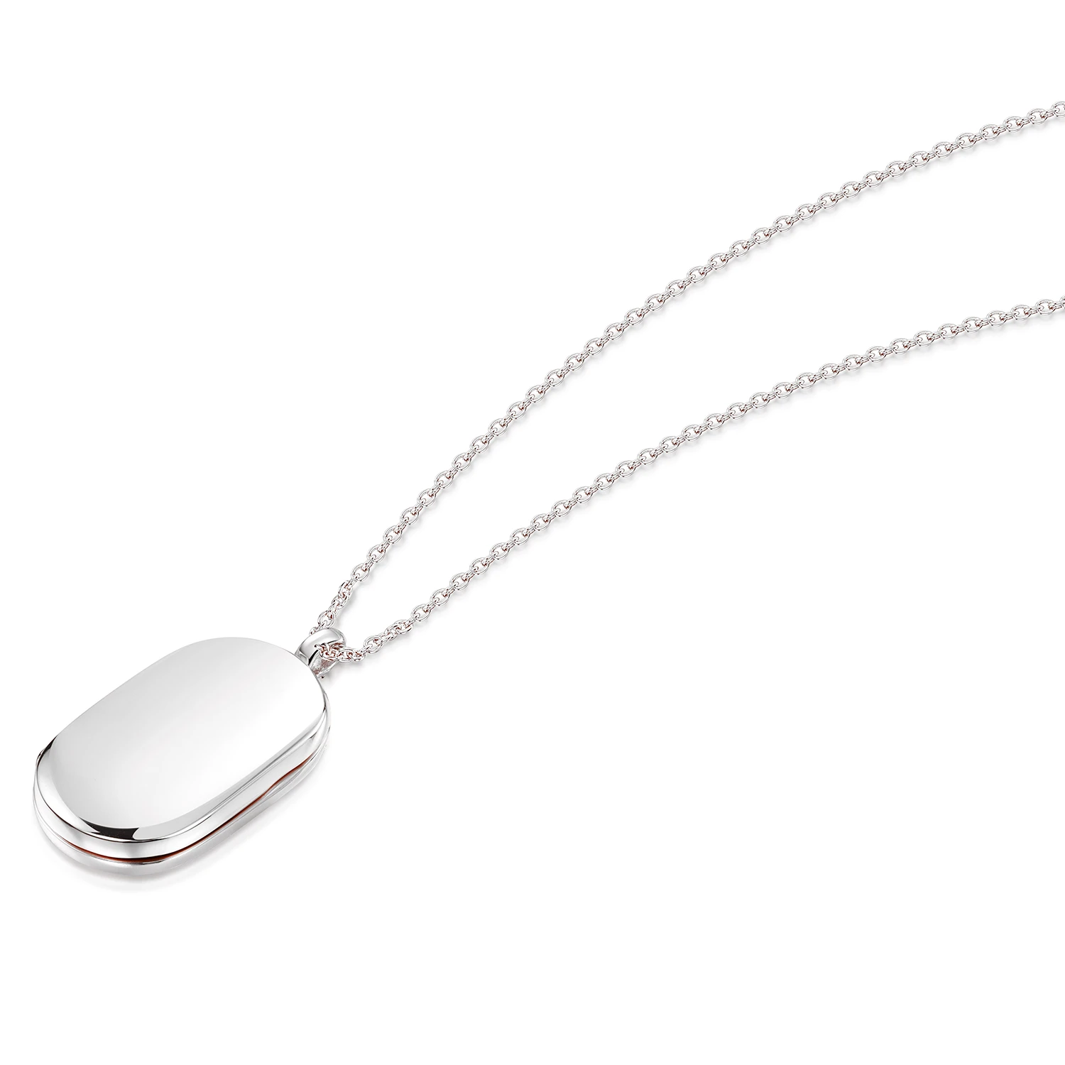 Large 925 sterling silver oval tag locket for men. Crafted with meticulous attention to detail, this locket combines the timeless elegance of sterling silver with the opulence of gold, creating a sophisticated and masculine accessory. This tag-shaped locket opens up to reveal space for two treasured photos, allowing you to carry memories close to your heart. For a personal touch, the reverse side can be engraved with a heartfelt message, making it a truly sentimental gift.