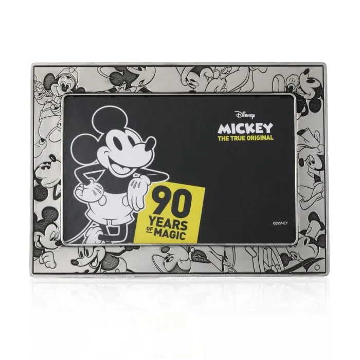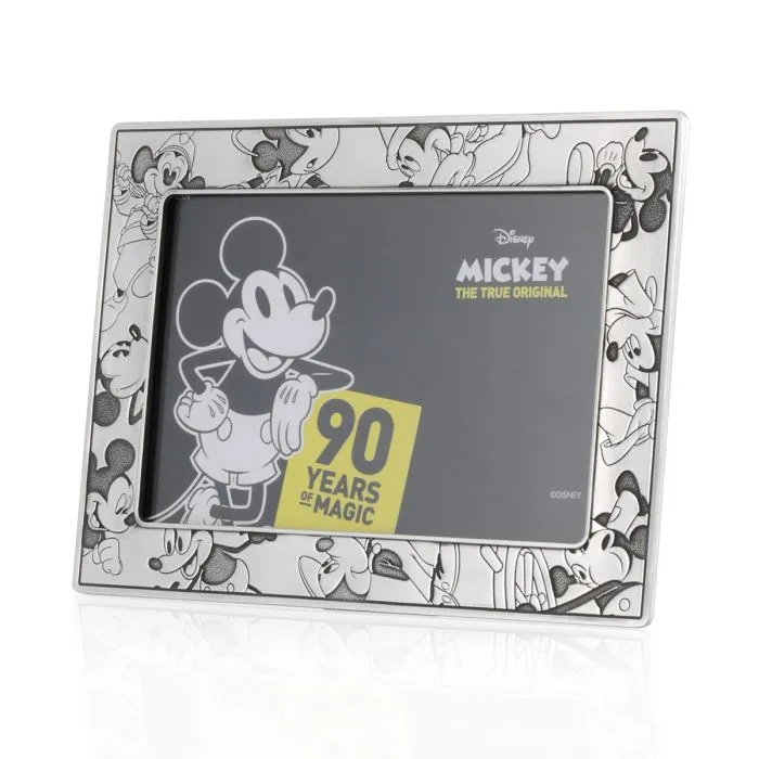 Mickey’s many appearances through the ages play in intaglio across a bright-polished pewter picture frame surround.