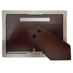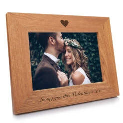 Sterling silver photo frame, to fit a printed 3.5×2.5 photo. Showcase your favourite photographs with this sterling silver plain design photo frame with a tan wooden back. This frame is completed with a standing strut. With the added special message, personalised using precision engraving. this gift is beautifully unique to everyone.