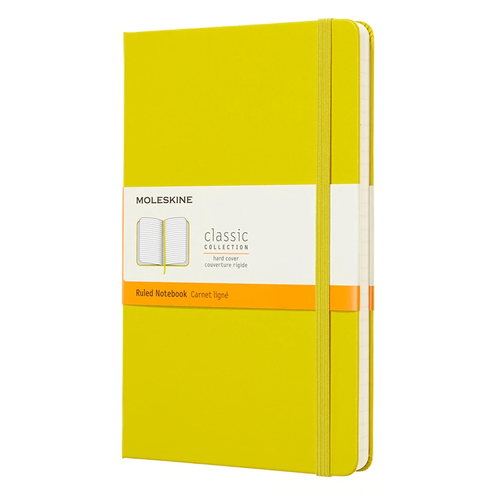 Jaune personalised notebook from the Moleskine Classic Collection. This notebook is designed in its simplest form, offering an open and blank space which welcomes self-expression. The ivory-coloured pages capture every line, word and sketch added, creating its own personal story and following in the tradition of the little jotting pads used by European artists, poets and philosophers over three hundred years.