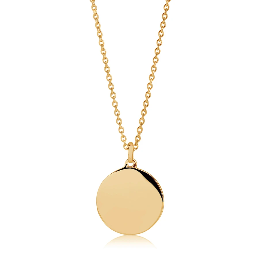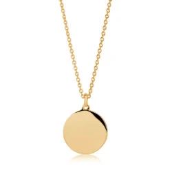 Classic disc pendant made of 925 Sterling silver with 18 karat gold plating. A beautiful personalised necklace from the eponymous Scandinavian jewellery house. Sif Jakobs jewellery is award winning and recognised across Europe for its clean lines, poise and finish. This piece is pared back to its essential form and delights in its simplicity to create an evergreen piece which will be a favourite in any wardrobe. Personalised by Engravers Guild of London with the finest diamond-tipped cutter, this is a special gift which will always be treasured.