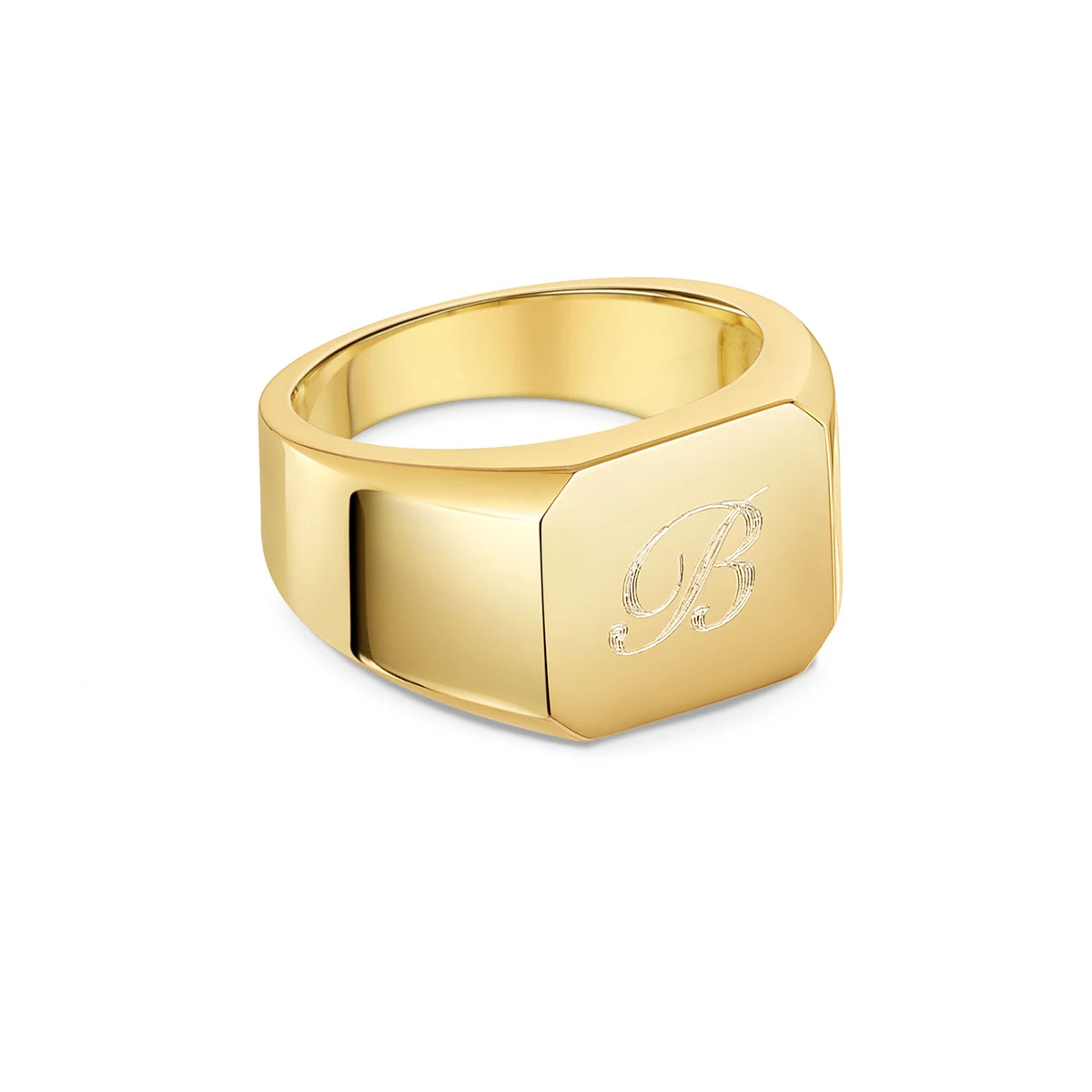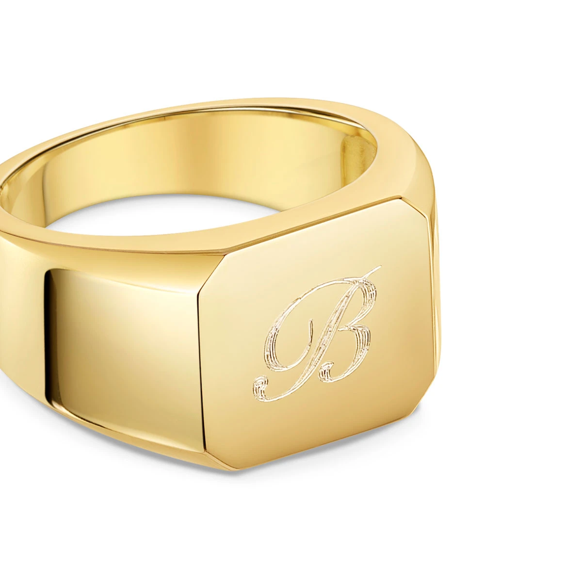 Octagonal Personalised Signet Ring – 18K Gold Plated Solid Silver
