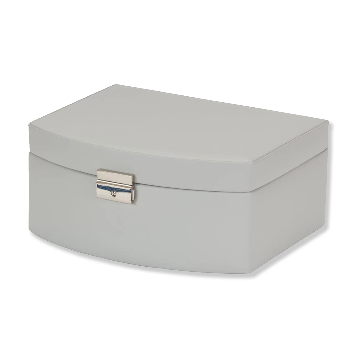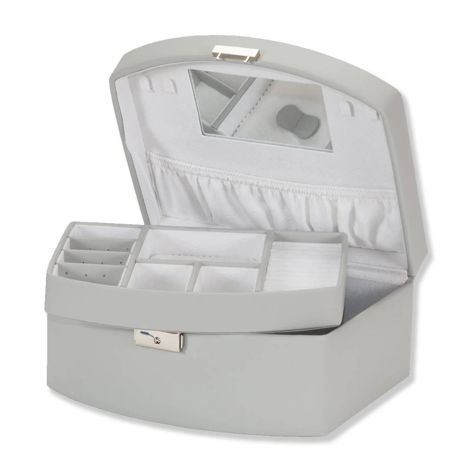 Store your treasures in style with this personalised bonded leather jewellery box in a chic misty grey. The classic design, with embossed initials, adds a unique touch, making it a perfect gift for any occasion.
