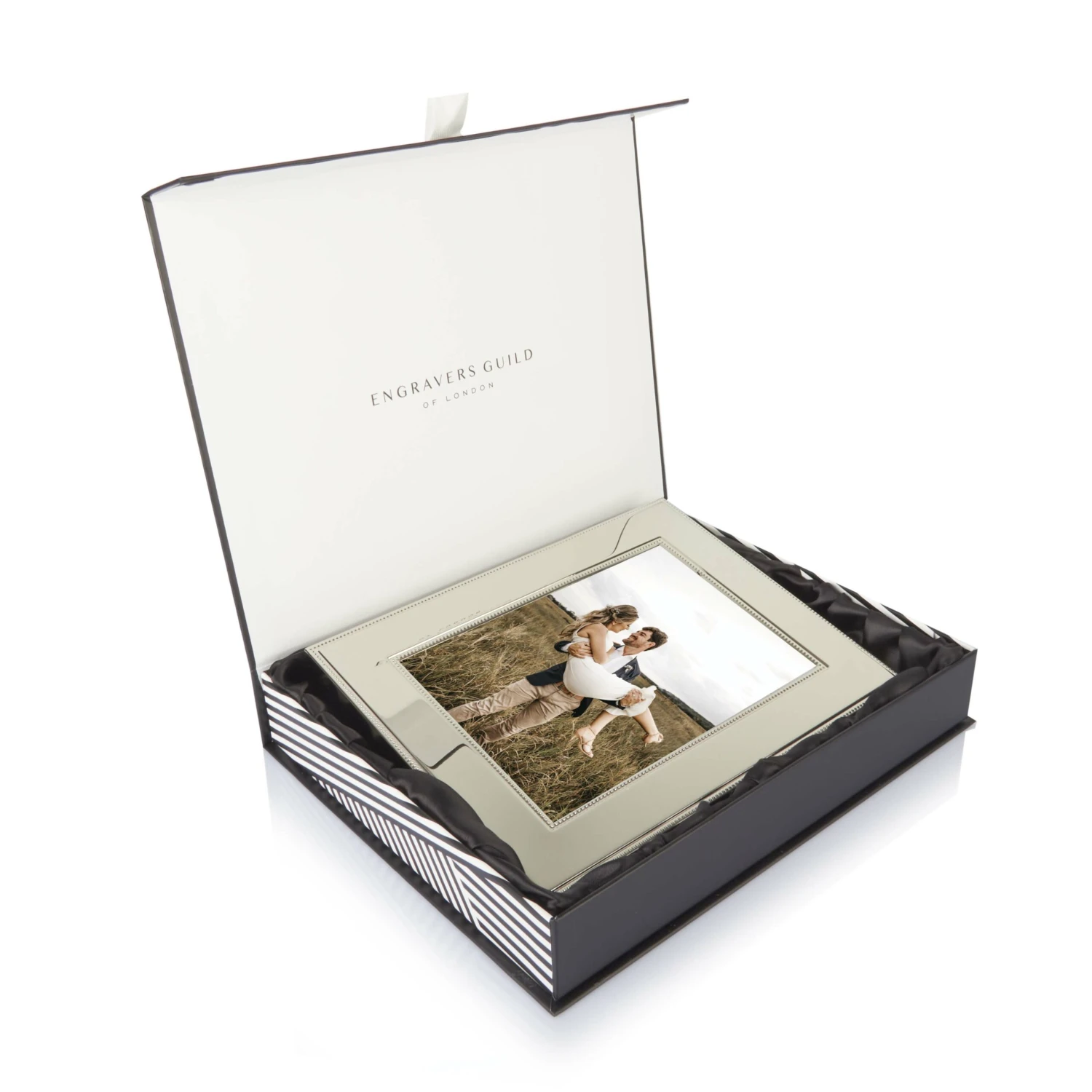 This frame measures 195mm x 145mm. Signature packaging creates a memorable opening experience.