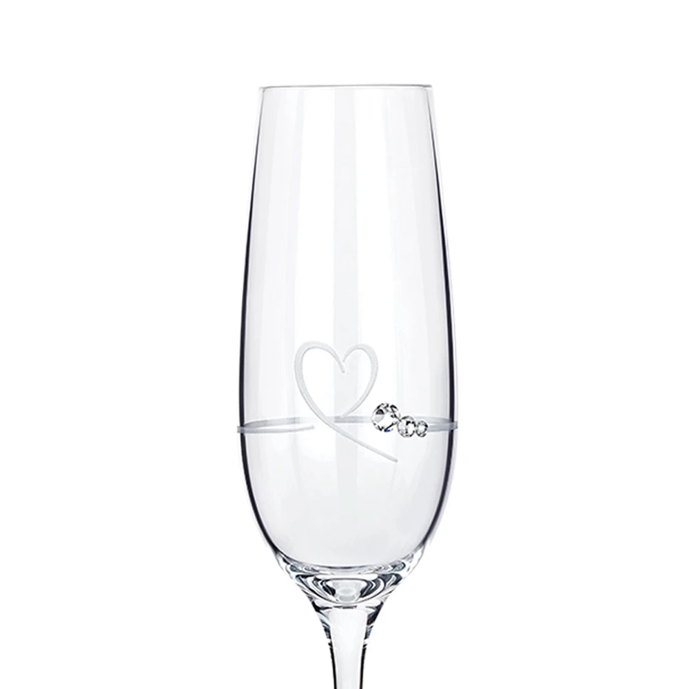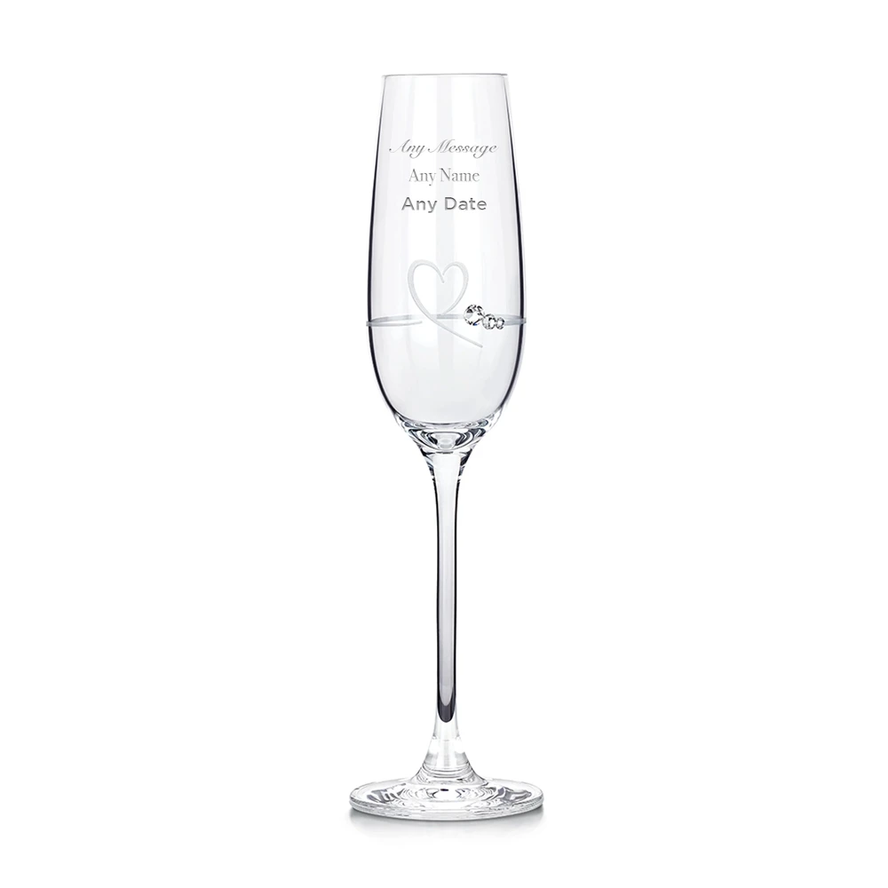 Premium quality crystal glass flute, with an elegant heart design featuring Swarovski crystals for an extra sparkle. Perfect for champagne or prosecco, this glass is ideal for romantic occasions. Precision laser engraving cuts a beautiful impression making the gift personal, and even more special.