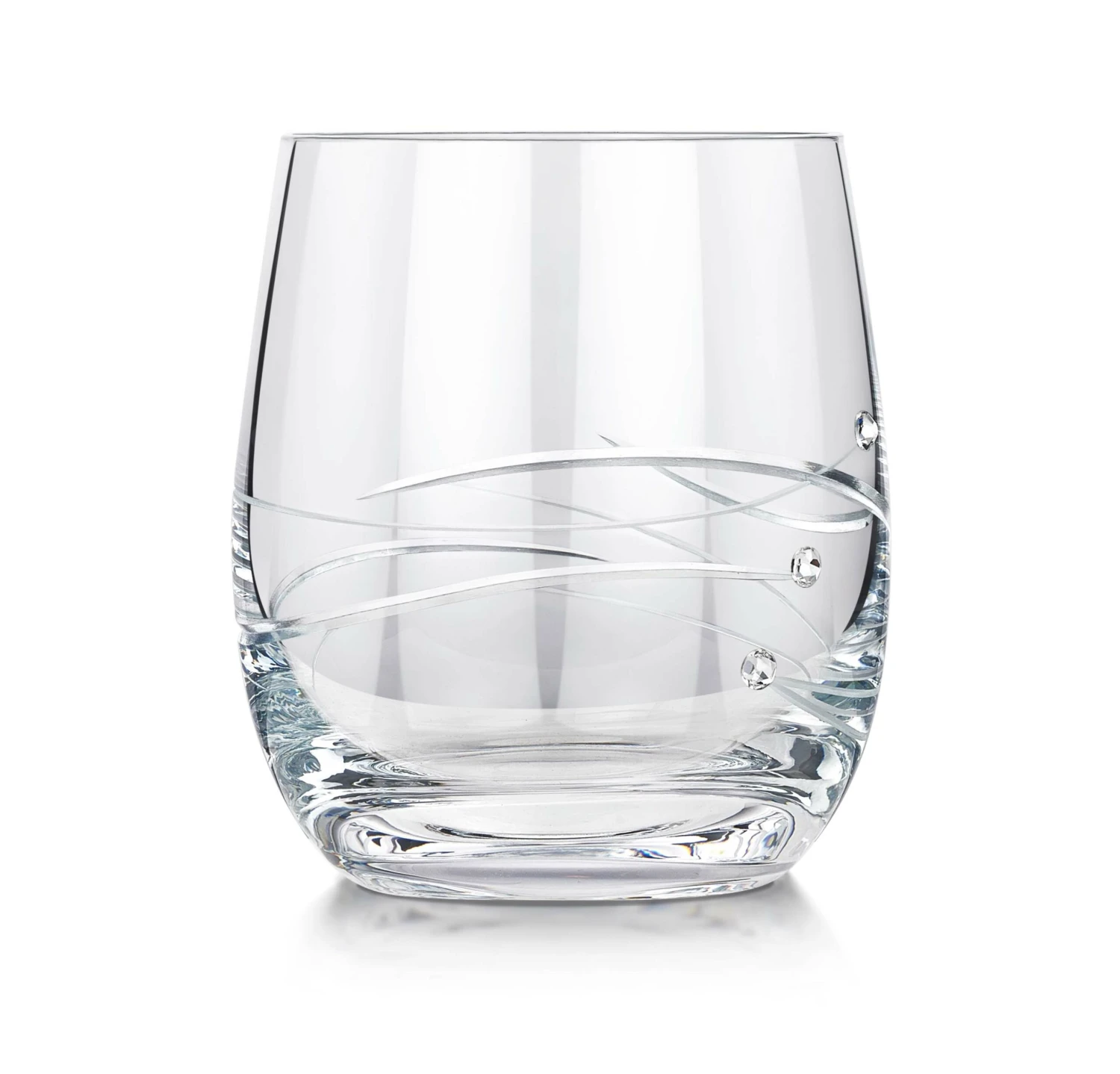 A barrel shaped whiskey glass with a little added sparkle with three diamante crystals. This whisky tumbler showcases a delicate curved design with spiral cutting and three Swarovski stones bonded on to the glass. The barrel shape to this glass allows oxygen to flow more freely around your spirit of choice, making the flavour enhanced and richer.
