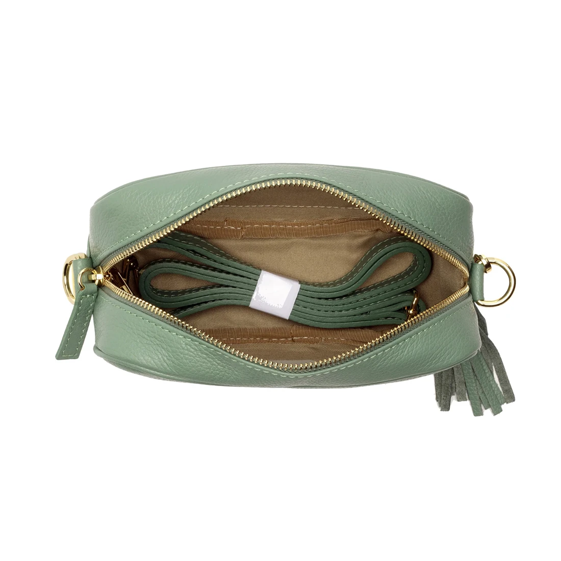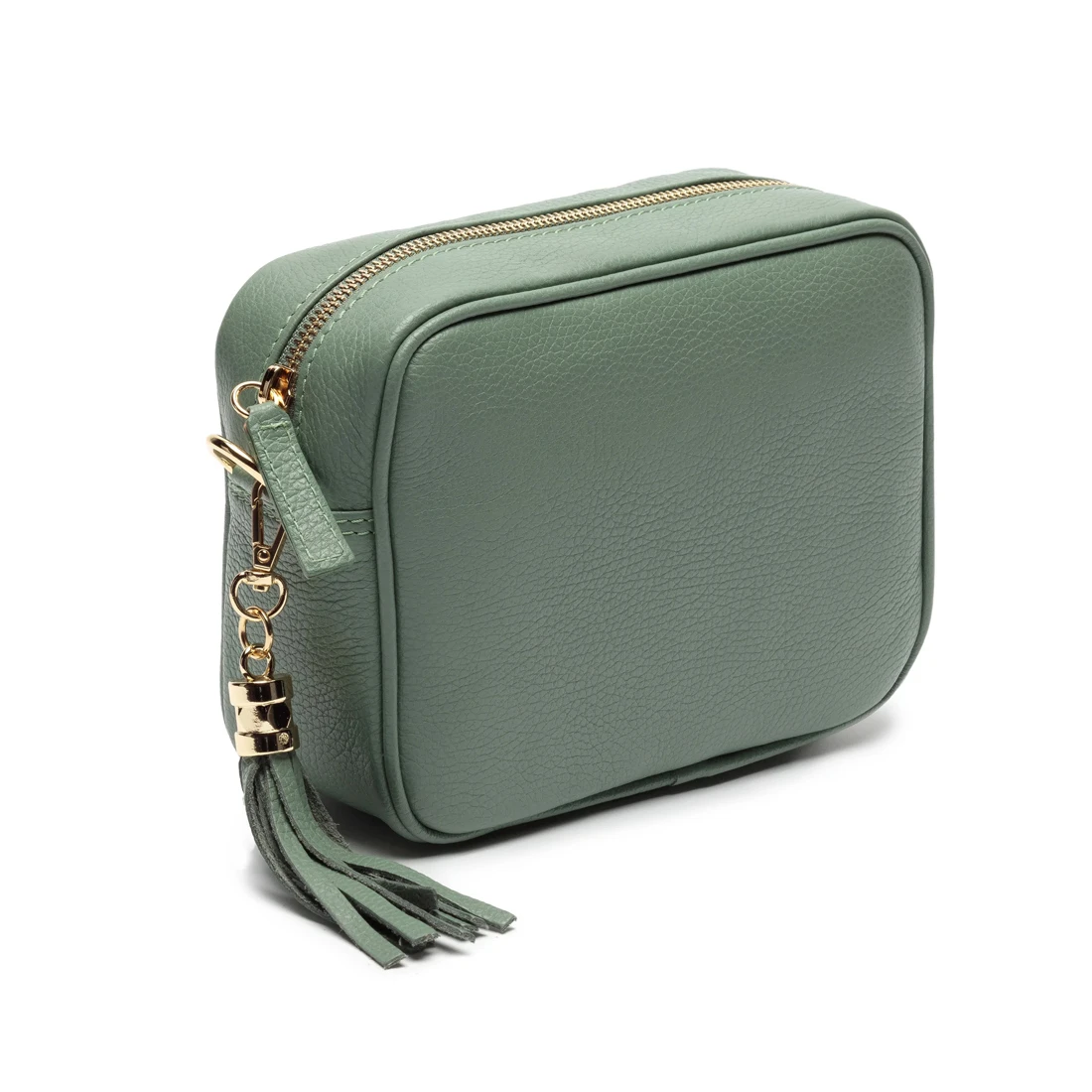 A genuine leather crossbody handbag, in the colour mint. This personalised bag is perfect for any occasion, day or night. Hand-finished and made from premium grained genuine leather by artisans in Italy, this bag features subtle gold fittings and a matching leather tassel. This crossbody also has a double layer reinforced base and includes both a matching slim leather strap and an Aztec patterned strap. Fully adjustable, they are worn crossbody or over the shoulder as your mood takes you. The perfect size for your phone, cards, keys, make-up and other essentials, this bag comes fully lined with an internal zipped change pocket and additional mobile phone pocket. Engravers Guild will emboss the recipient’s initials to make this bag extra special.