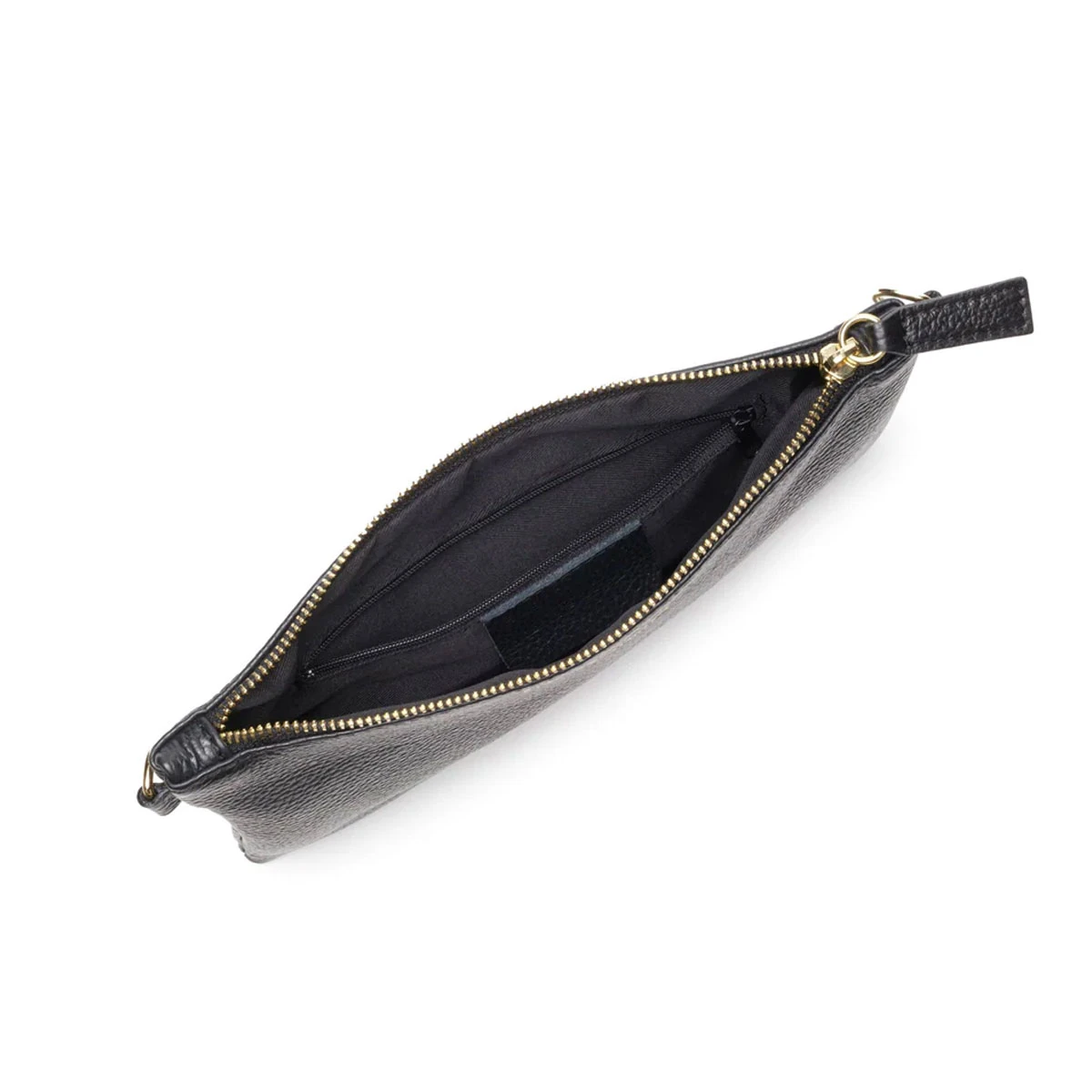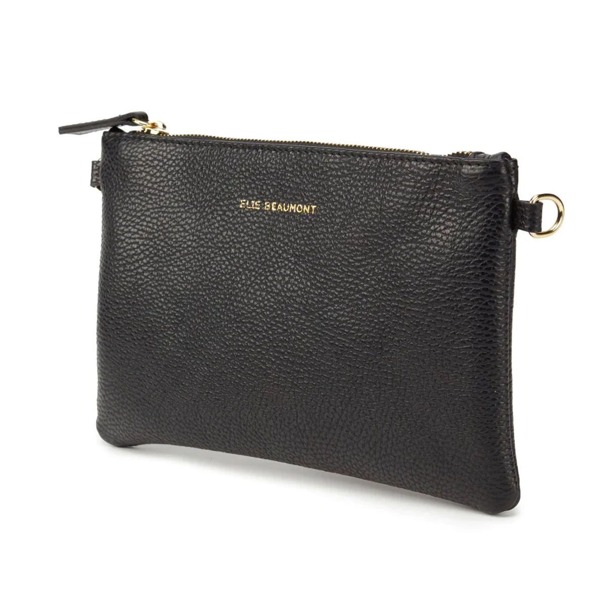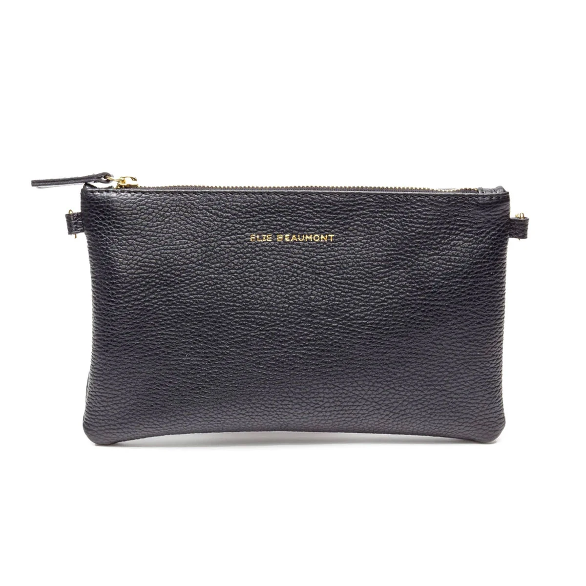 A genuine leather pouch bag, in the colour black. The compact and functional Elie Beaumont pouch is a truly versatile bag made for life on the go. This pouch bag transforms from your day out as a practical crossbody, through to a designer clutch to dress up any evening look. Each of our bags includes a matching, fully adjustable slim leather strap, so can be worn crossbody or over the shoulder. Alternatively carry as a clutch or for that super dress-up look, attach a wristlet to dangle seductively from the wrist. The prefect size for your phone, cards, keys, make-up and other essentials, they come fully lined with an internal zipped change pocket.