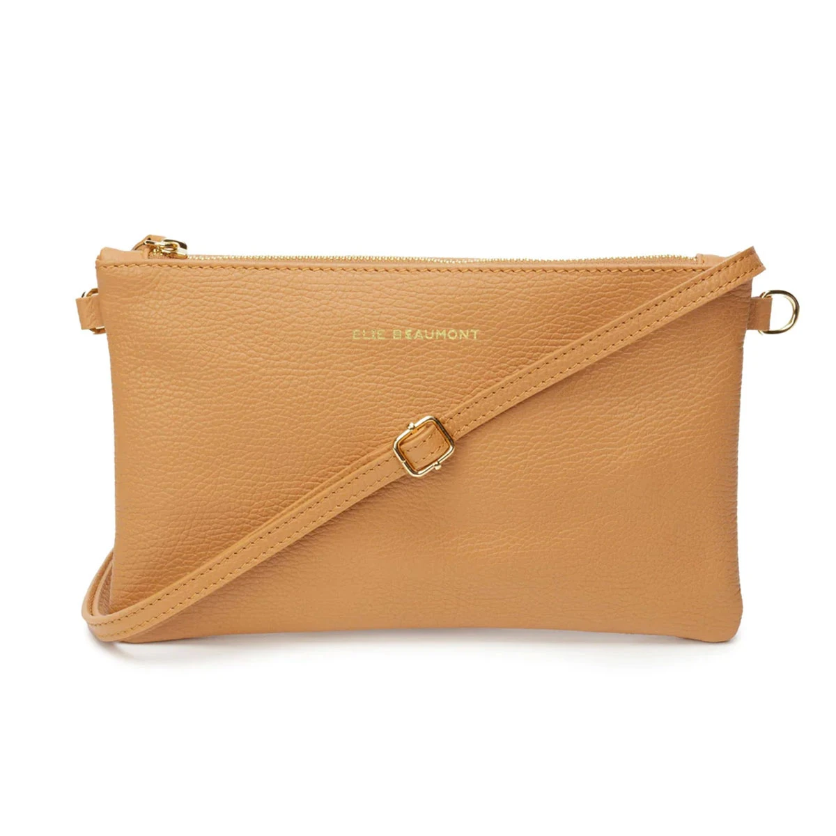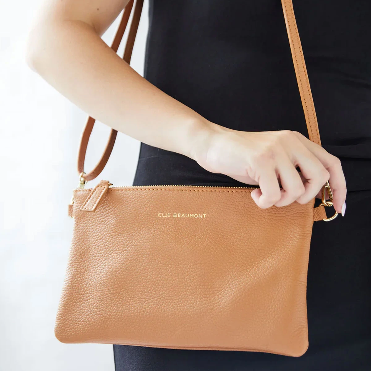 A genuine leather pouch bag, in the colour caramel. The compact and functional Elie Beaumont pouch is a truly versatile bag made for life on the go. This pouch bag transforms from your day out as a practical crossbody, through to a designer clutch to dress up any evening look. Each of our bags includes a matching, fully adjustable slim leather strap, so can be worn crossbody or over the shoulder. Alternatively carry as a clutch or for that super dress-up look, attach a wristlet to dangle seductively from the wrist. The prefect size for your phone, cards, keys, make-up and other essentials, they come fully lined with an internal zipped change pocket.