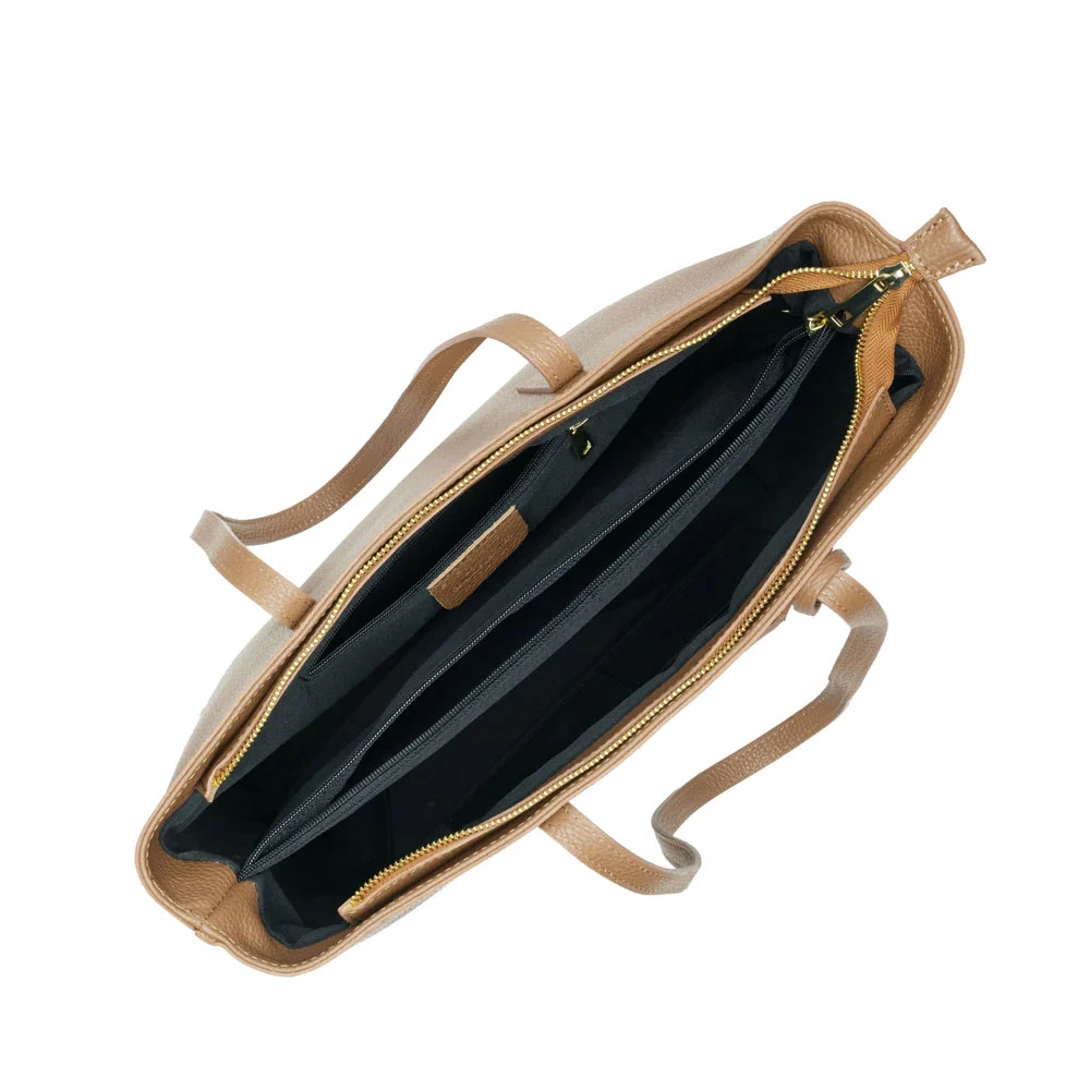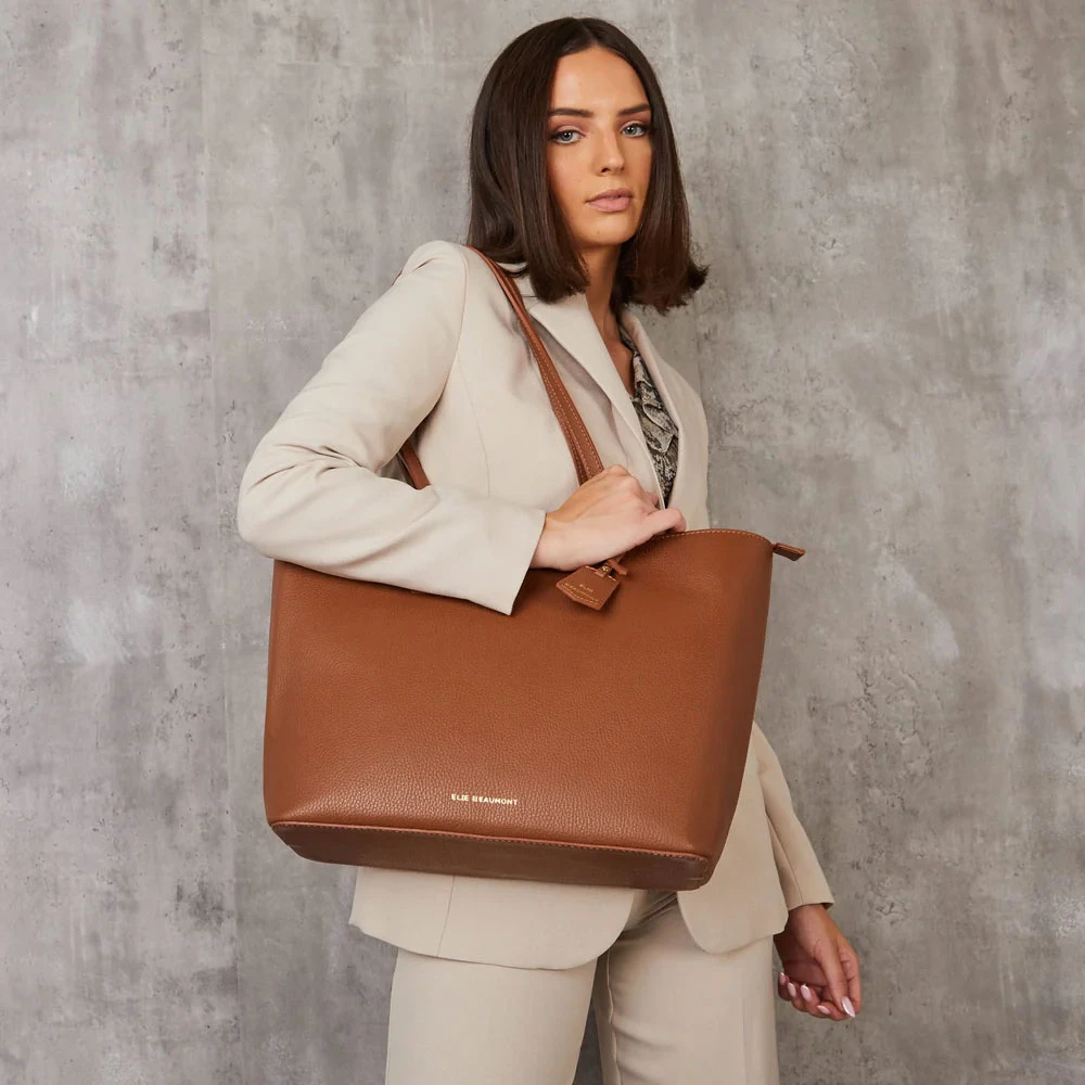 Elevate your style with this Tan Tote Bag, a luxurious Italian-made masterpiece crafted from genuine premium leather. Imbued with sophistication, polished metal fixings accentuate its timeless design. The bag features three full-width sections, including a zippered pocket for mobile or spare change, along with two smaller pockets for added organisation. Security is paramount, thanks to the entire tote’s zip closure. The double-layered reinforced base ensures durability and stability, making it a chic and practical companion for the modern woman on the go.