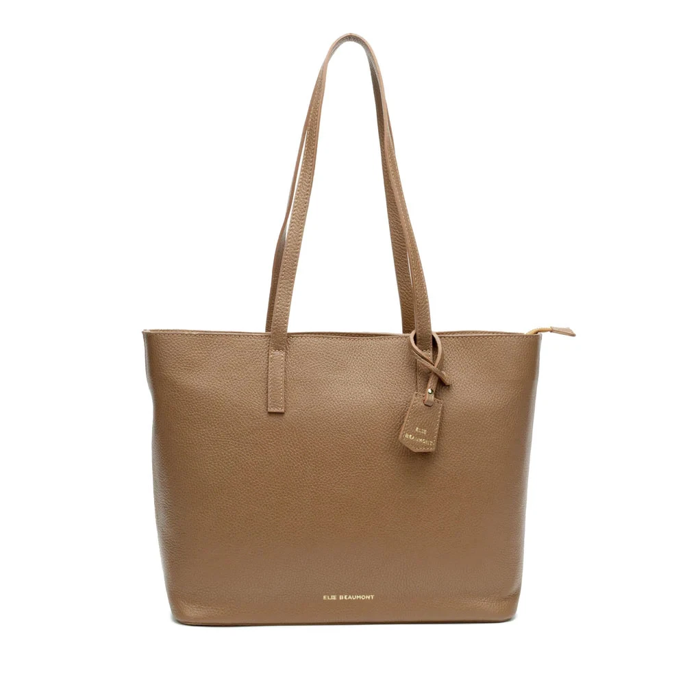 A genuine premium leather tote bag, in the colour tan, made in Italy.