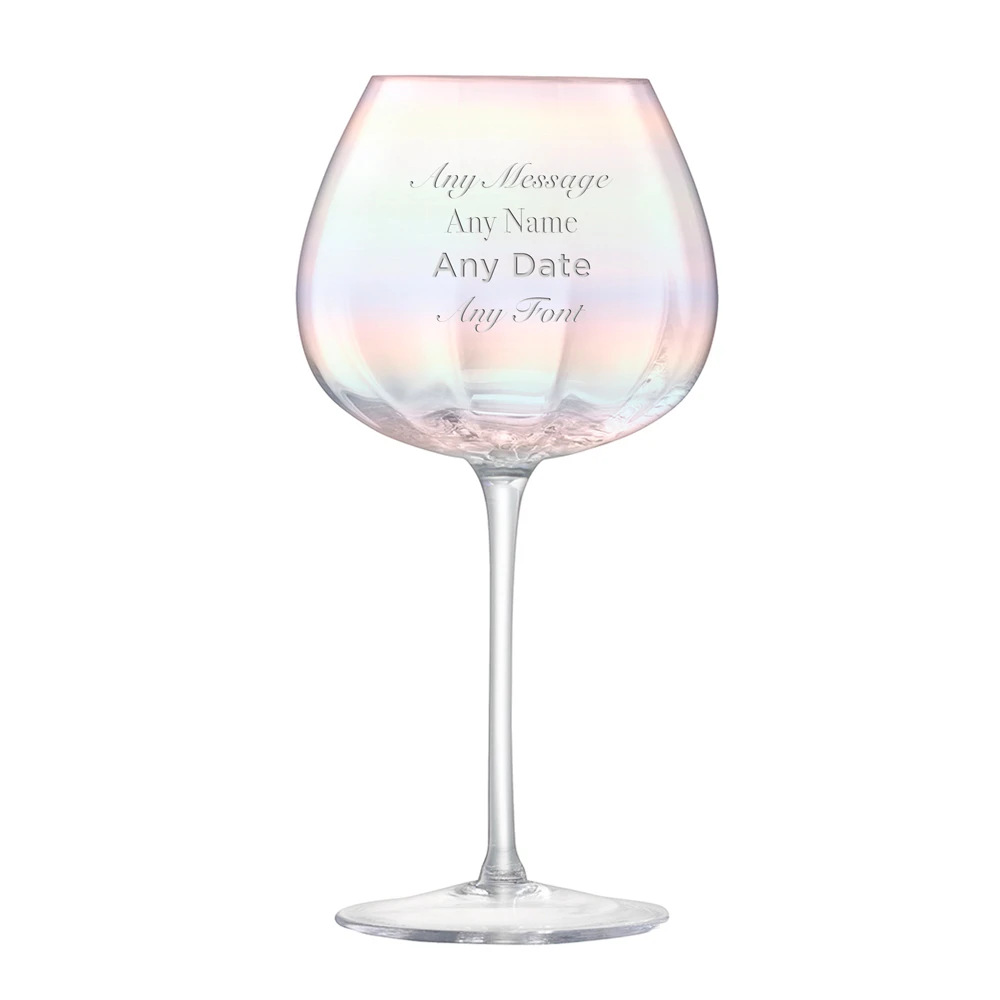 A personalised gin glass featuring iridescent lustre from LSA International. This stunning glass is a perfect gift for the modern gin drinker, great for regular use or as decorative tableware. These are mouth-blown gin glasses, hand painted and beautifully finished. The bowls have a subtly-fluted texture which fades towards the rim. Add a personalised message of your choice to make it extra special. Precision laser engraving creates a crisp impression.