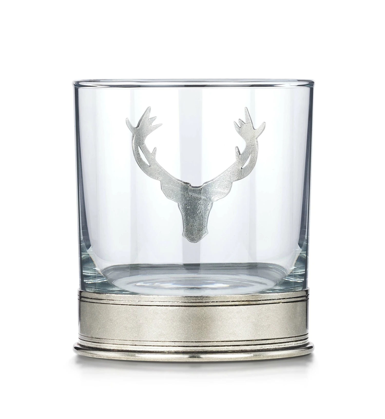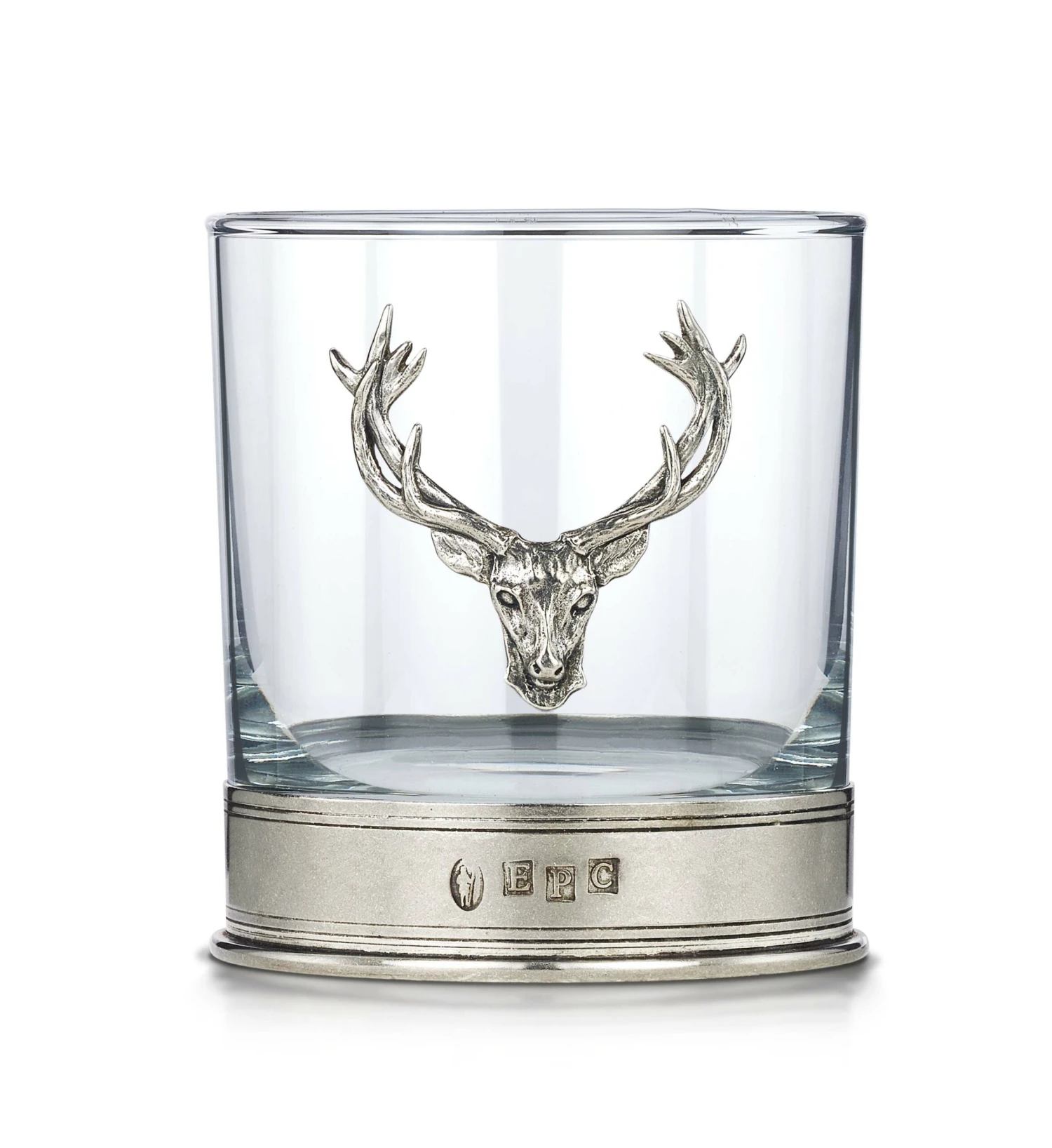 Whisky tumbler with a pewter stag emblem, presented in luxury velvet packaging. A wonderful gift for that loved one who enjoys a tipple and has a keen eye for style, is this fabulous personalised stag head whisky tumbler. Each glass features the touchmark of English Pewter Company which adds authenticity to the antique style finish. Precision laser engraving cuts a beautiful impression which makes for a personal and special gift.