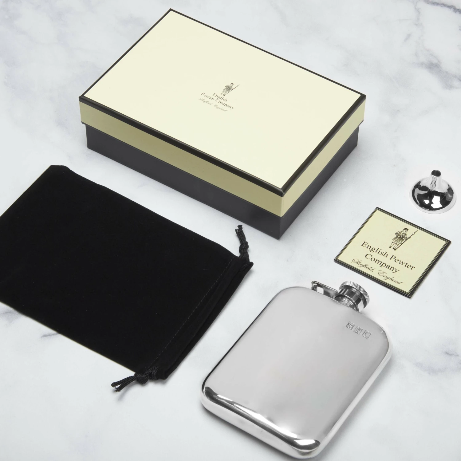 The hip flask of all hip flasks, this classic 6 oz pewter hip flask epitomises traditional design with a modern sensibility. Made by hand in Sheffield by the English Pewter Company, it is a wonderful example of fine British manufacturing and delights with the finish of the product. Product includes funnel.