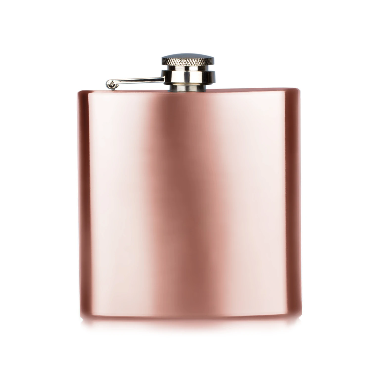 Classic personalised hip flask with polished copper finish and detailed chrome features on lever-arm cap. The full-length engraving area showcases the bespoke diamond-cut personalisation for a beautifully individual gift.