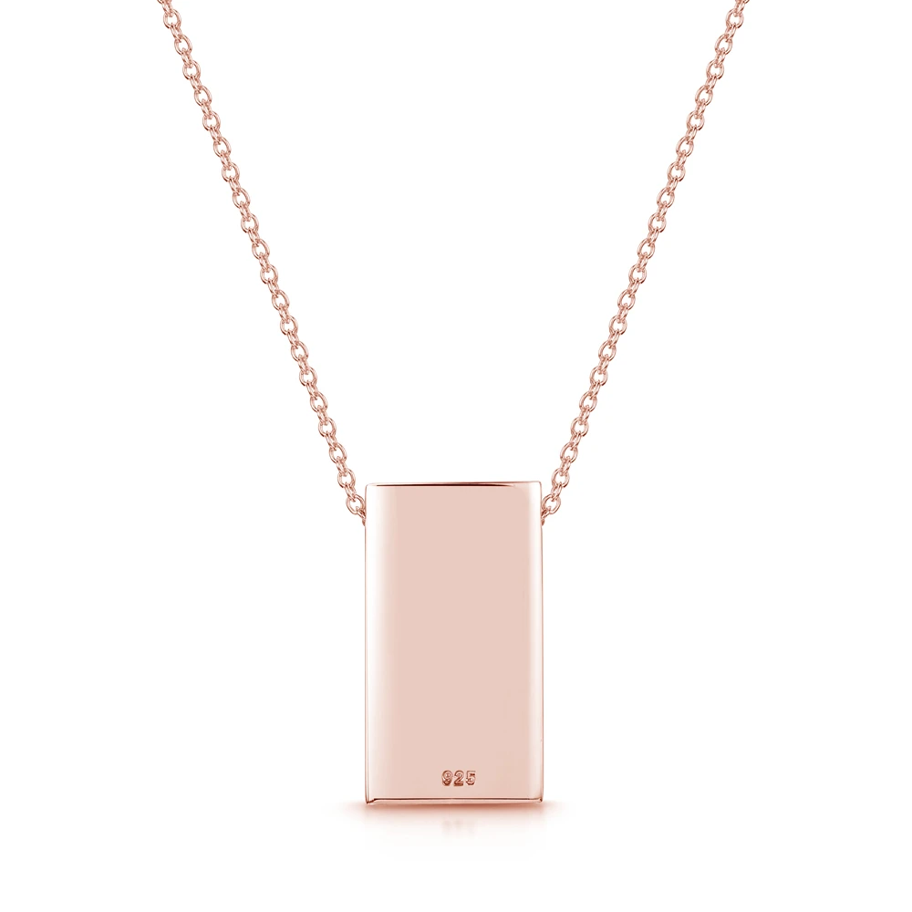 Solid 925 sterling silver pendant plated in rose gold from MYRI London, personalised by Engravers Guild. Sleek and clean lines define this exquisite piece, paring the design back to its simplest form and creating a contemporary yet timeless style. The substantial pendant perfectly showcases a personalised message, which can be engraved on either the front or reverse. With the engraving made with a precision diamond-tipped cutter, the engraved necklace is ideally suited for those occasions where you want to say a little more.