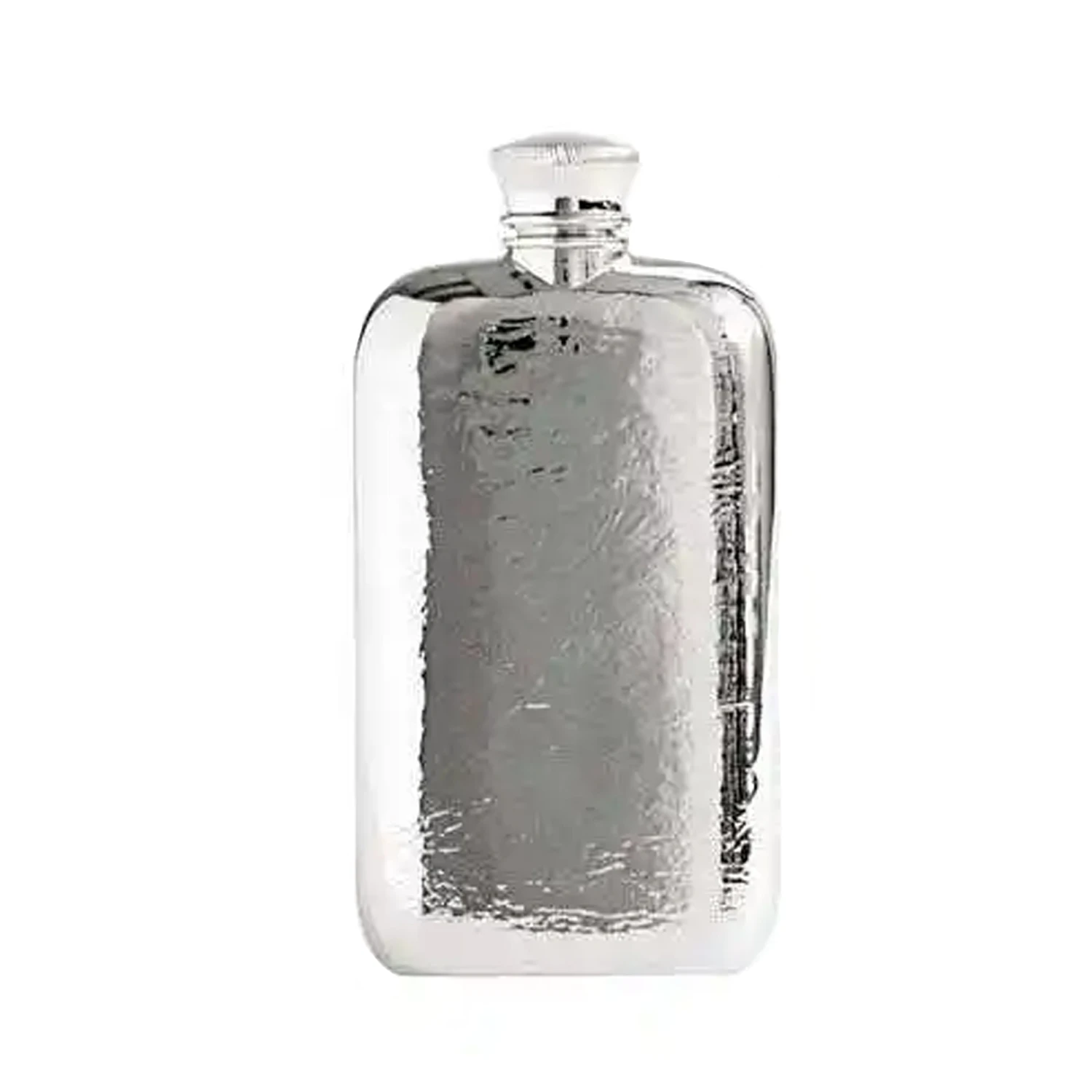 Heavyweight cast pewter personalised hip flask with textured leather effect from Royal Selangor. Made from cast solid pewter as opposed to sheet pewter, this engraved hip flask defines a superior quality in pewter ware. The beautiful craftsmanship brings a luxurious sensibility which is perfectly completed by the solid dark wood presentation case with moulded velvet lining.