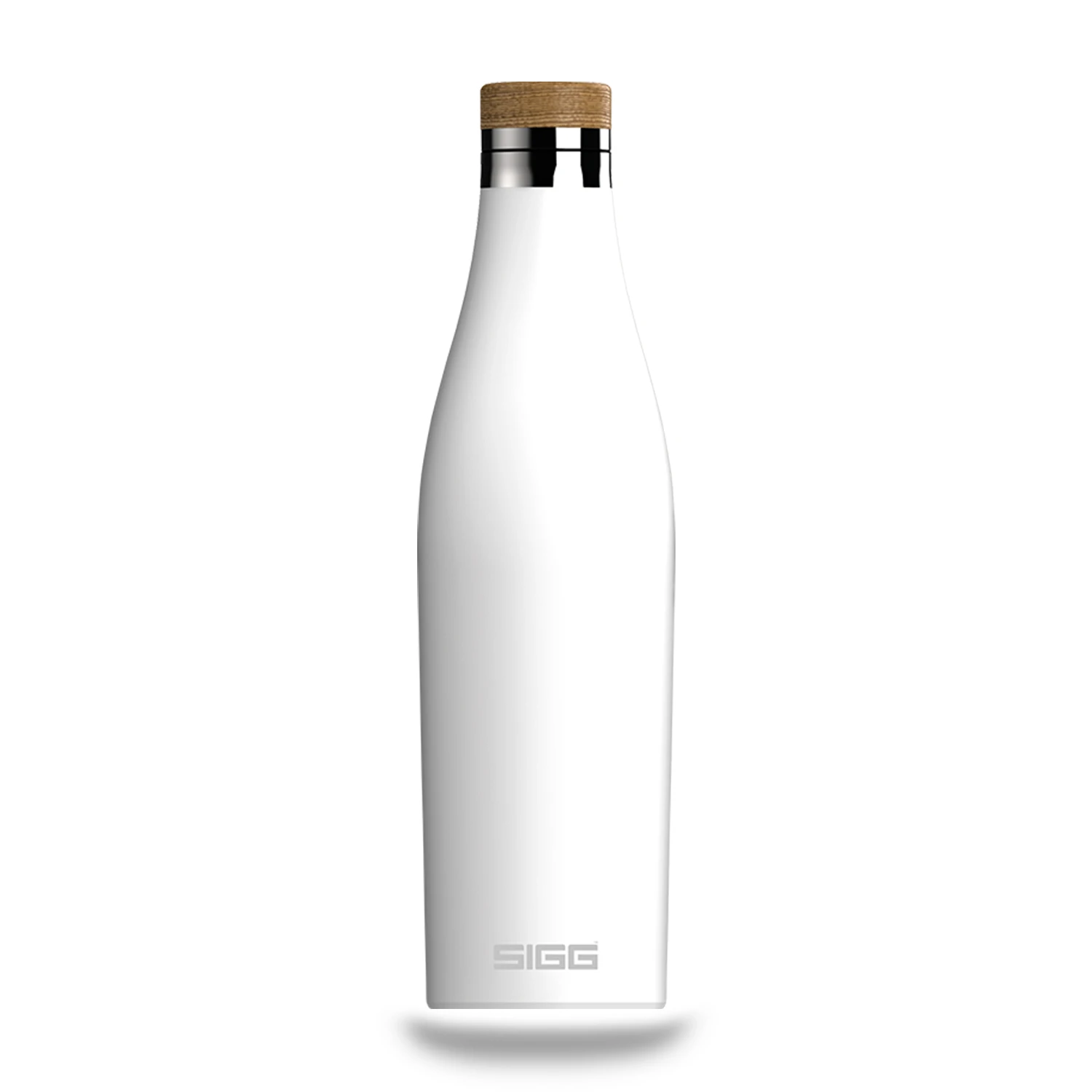 Personalised Meridian drinks bottle in the colour white from SIGG, designed and engineered in Switzerland. Stay hydrated in style with this laser engraved water bottle, made to meet all your requirements for a convenient and eco-friendly hydration experience. Each bottle is crafted with high-quality materials that are BPA-free, food safe and contain absolutely zero plastic. The bottle is double-walled, vacuum insulated and copper plated on the inside, ensuring that your drink stays fresh and at the desired temperature.