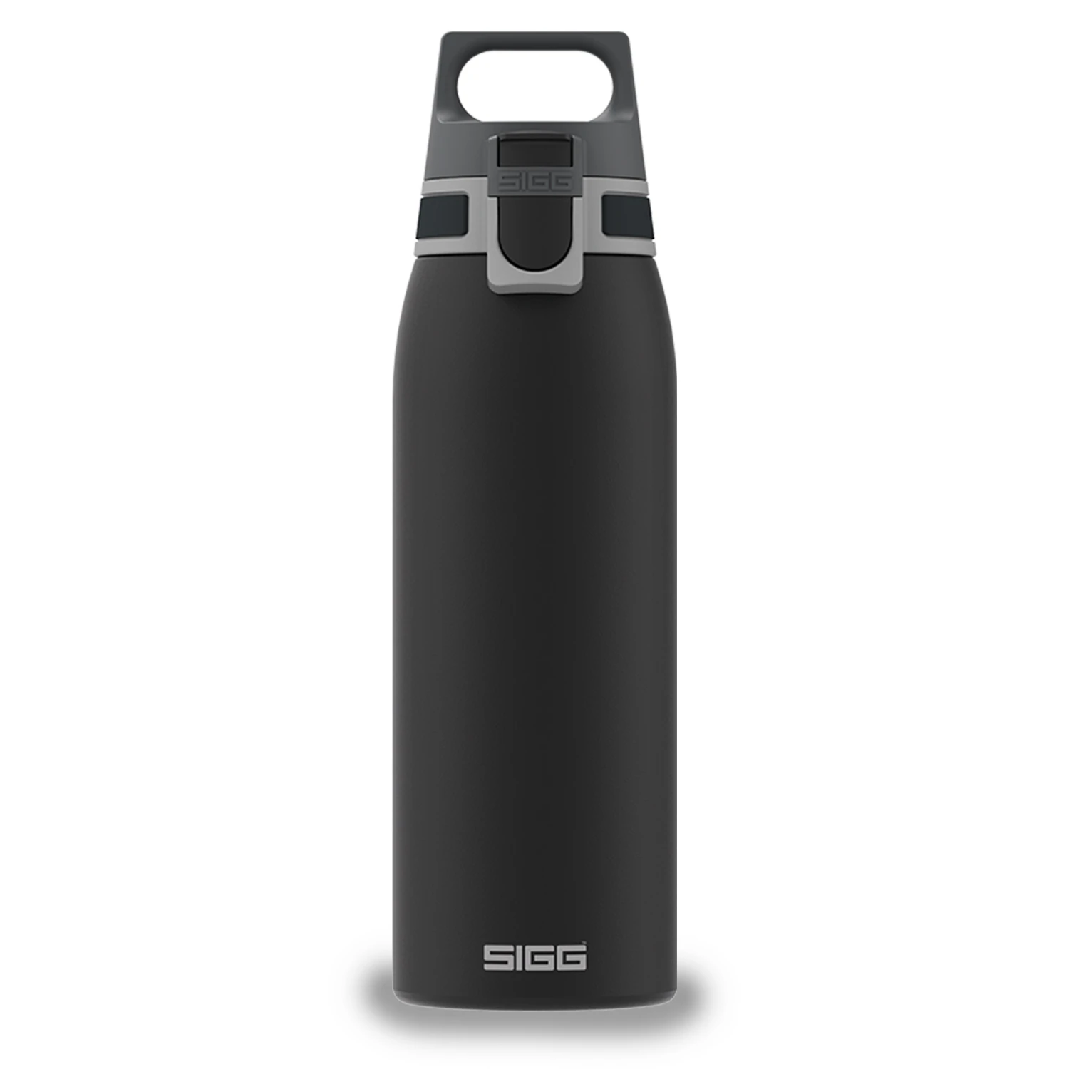Personalised Shield ONE drinks bottle in the colour black from SIGG designed and engineered in Switzerland. This bottle has a capacity of 1 litre, it has plenty of space to hold your favourite beverages and keep you hydrated throughout the day. The bottle’s wide neck allows for easy cleaning and the handle makes it easy to carry around. The bottle is made from BPA-free materials, ensuring that it’s safe to use and that your drinks will not be contaminated with harmful chemicals. Additionally, the bottle is guaranteed leak-proof even with carbonated drinks. This ensures that you don’t have to worry about any spills or leaks when you’re on the move.
