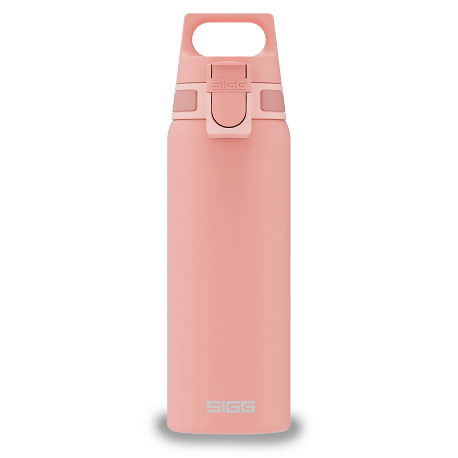 Personalised Shield ONE drinks bottle in the colour shy pink from SIGG, designed and engineered in Switzerland. With a capacity of 0.75 litres, this bottle has plenty of space to hold your favourite beverage and keep you hydrated throughout the day. The bottles wide neck allows for easy cleaning and the handle makes it easy to carry around. The bottle is made from BPA-free materials, ensuring that it’s safe to use and that your drinks will not be contaminated with harmful chemicals. Additionally, the bottle is guaranteed leak-proof even with carbonated drinks, ensuring that you don’t have to worry about any spills or leaks when on the move.