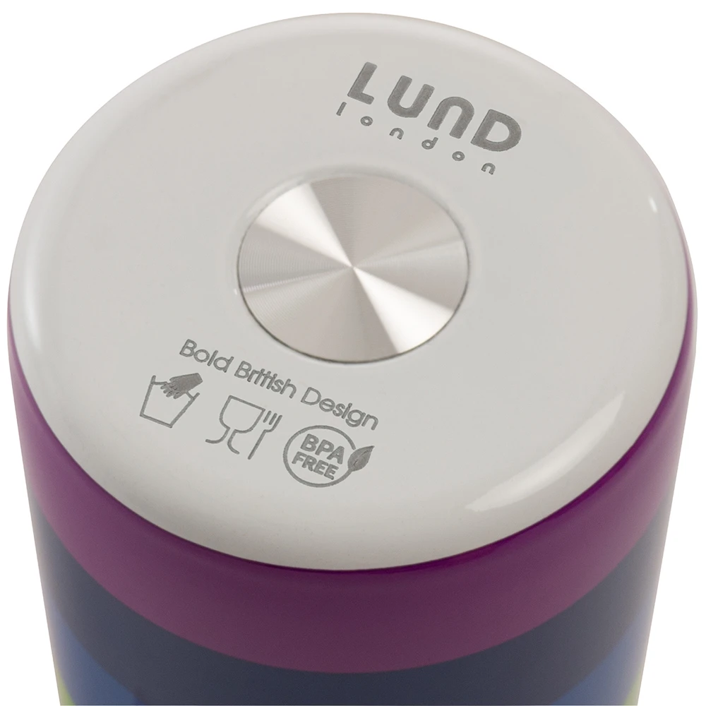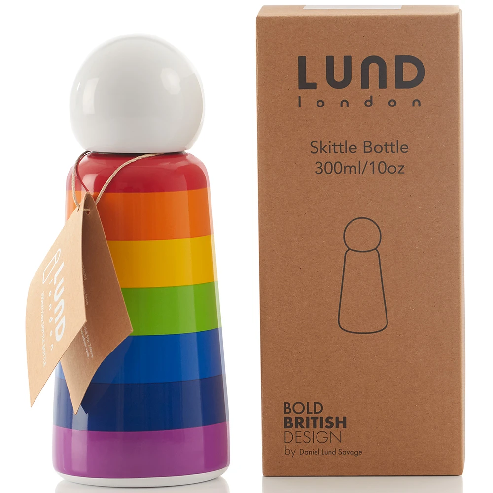 The original Skittle bottle from the eponymous British design company, Lund London. This personalised water bottle features a colourful rainbow design. Made from high grade stainless steel, the Skittle range combines functionality with contemporary design to create fresh and unique products for everyday living. They’re the perfect portable hygiene accessory for both hot and cold drinks, and are reusable for a greener world. It fits standard ice cubes and keeps contents cold for 24 hours, whilst also keeping warm contents hot for 12 hours.