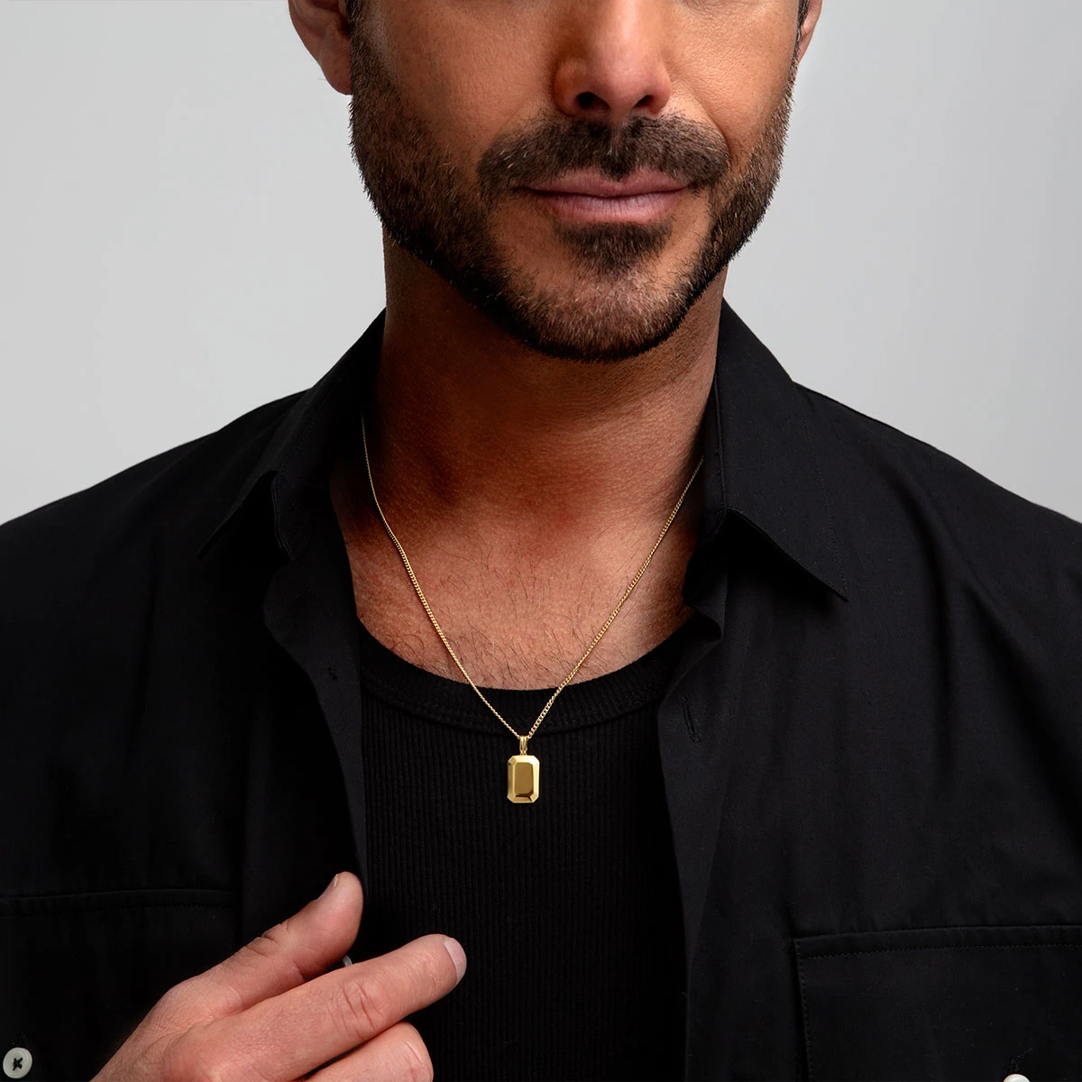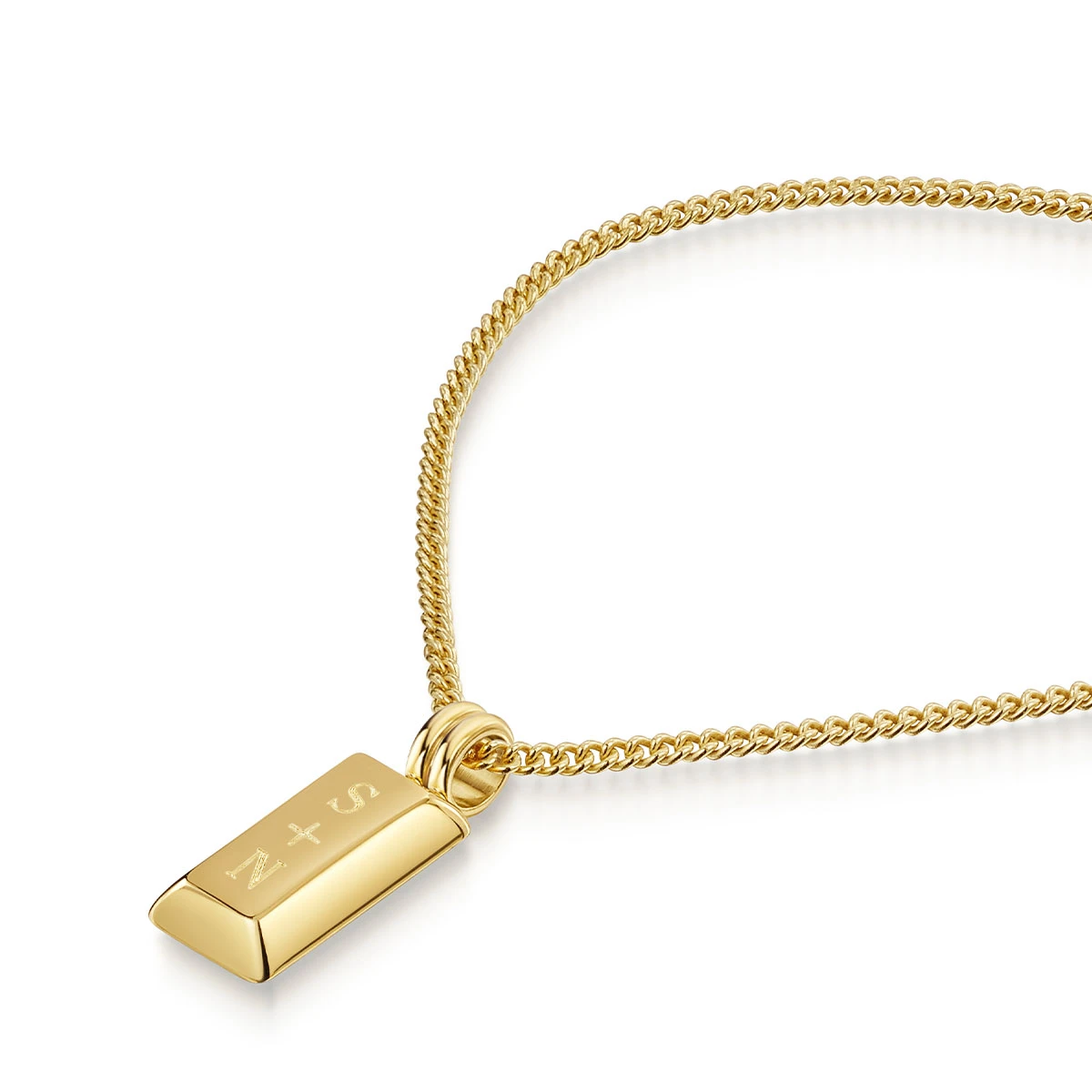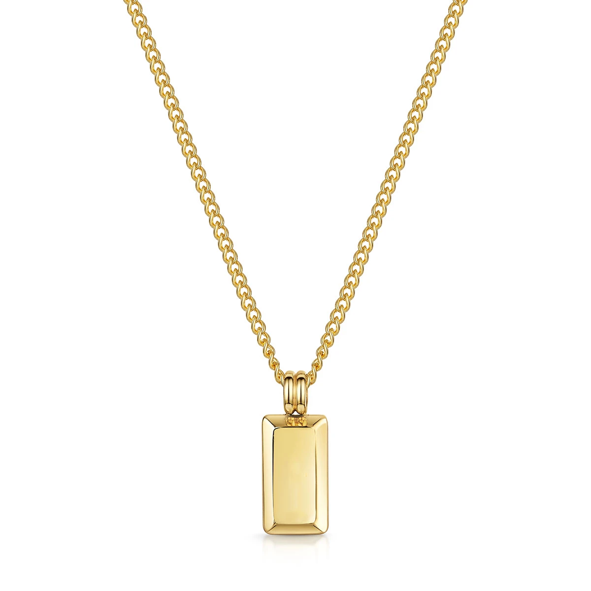 A subtle statement piece for the modern gentleman, the Small Ingot pendant and chain from Clewley are crafted from stainless steel plated with 18K gold, making for a durable necklace for everyday wear.