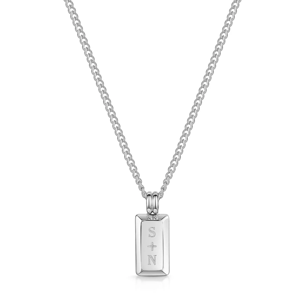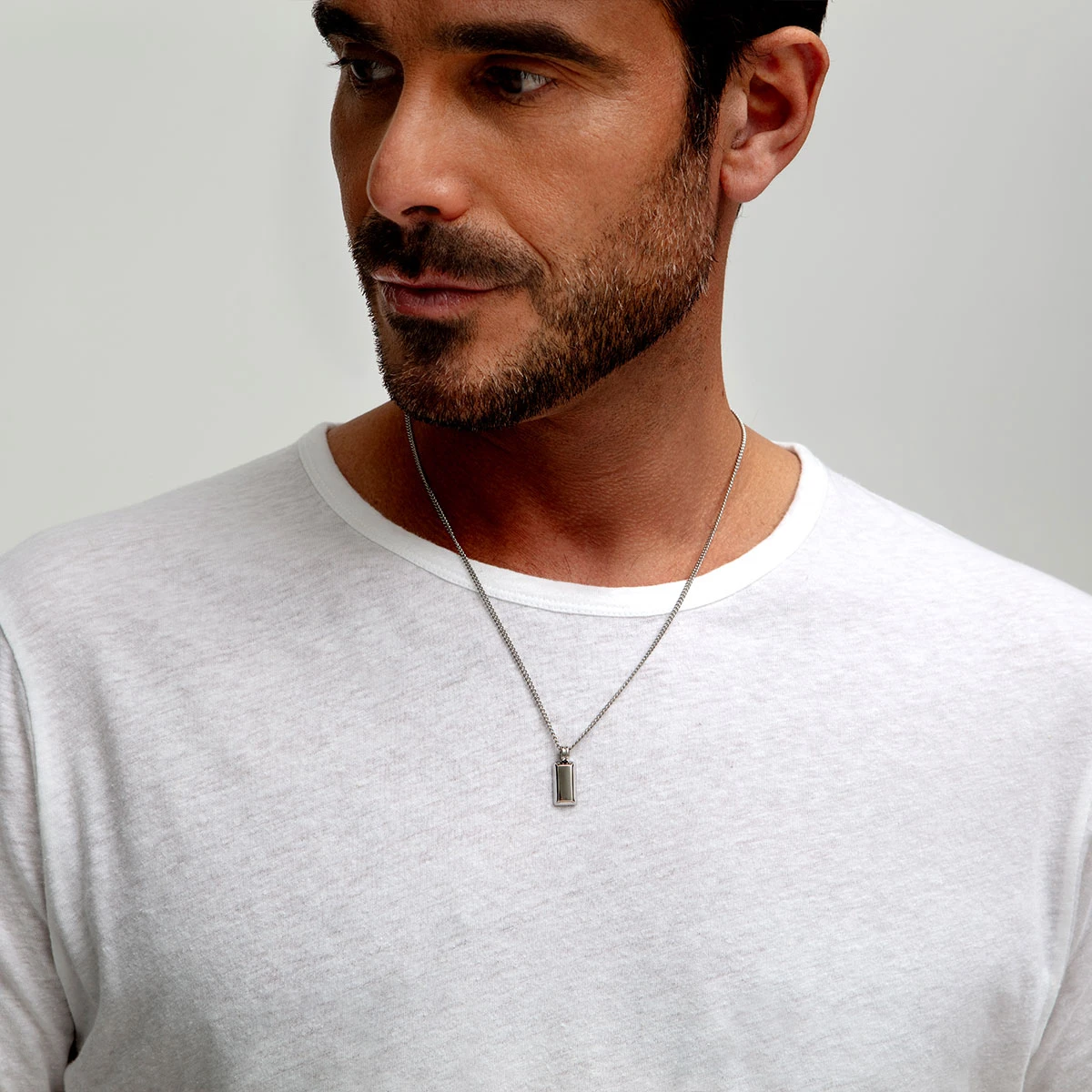 A subtle statement piece for the modern gentleman, the Small Ingot pendant and chain from Clewley are crafted from stainless steel, making for a durable necklace for everyday wear.