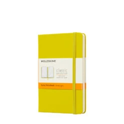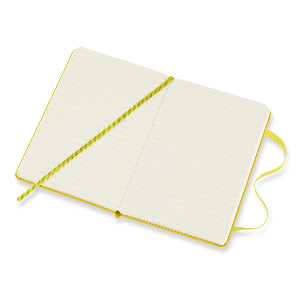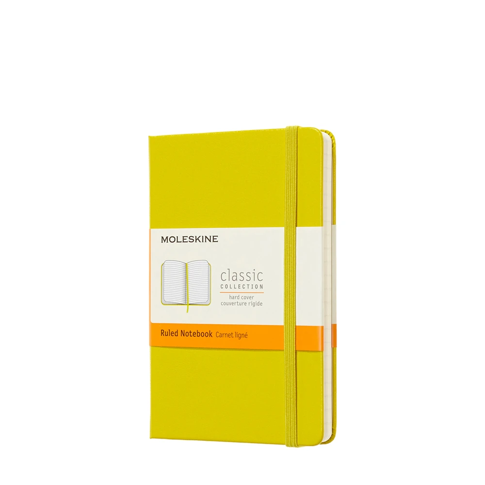 Small lemon green personalised notebook from the Moleskine Classic Collection. This notebook is designed in its simplest form, offering an open and blank space which welcomes self-expression. The ivory-coloured pages capture every line, word and sketch added, creating its own personal story and following in the tradition of the little jotting pads used by European artists, poets and philosophers for over three hundred years.